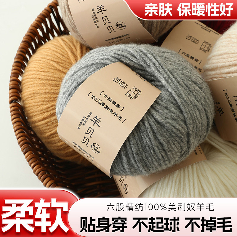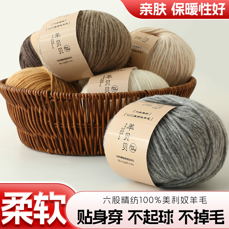 羊贝贝100%精纺美利奴羊毛线中粗毛线团手工编织diy棒针帽子围巾