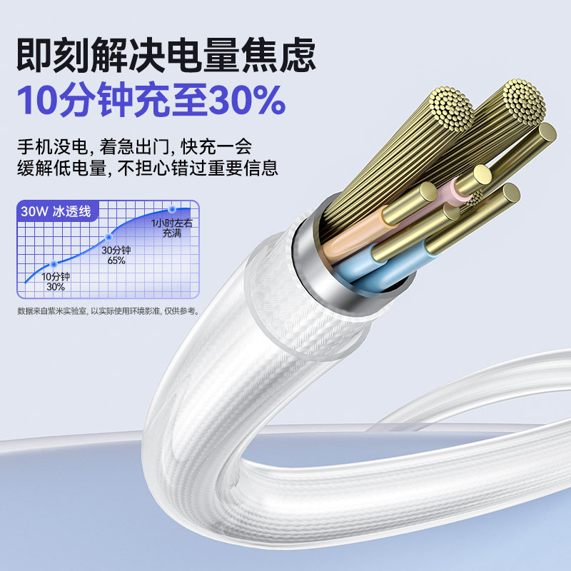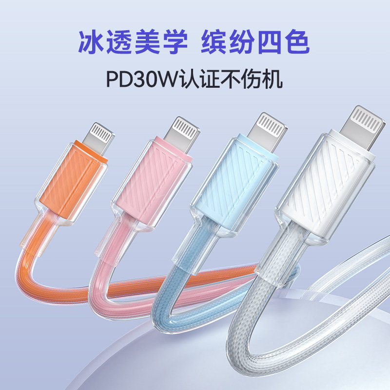 适用苹果14冰透数据线iPhone13充电线13ProMax手机12冲电线USB车载短款PD30快充加长iPad平板充电器线20W套装