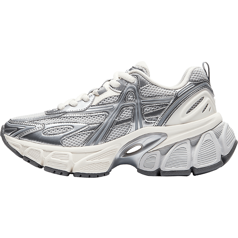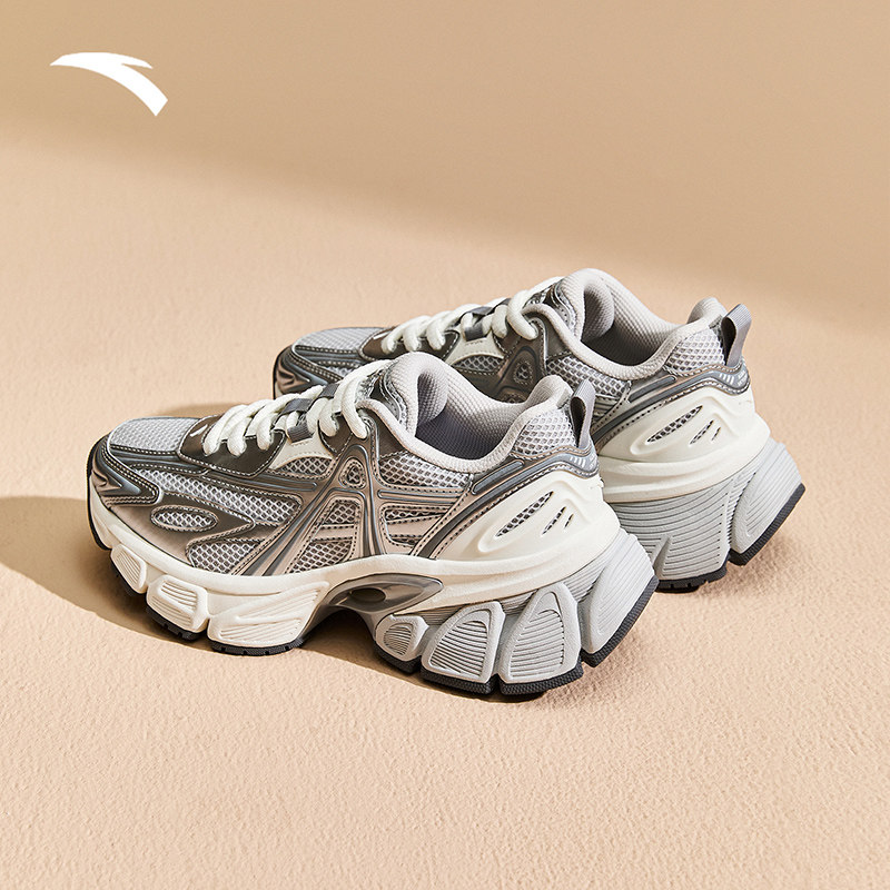 安踏天阙丨复古跑步鞋厚底增高轻质女春季新款潮流银色减震运动鞋