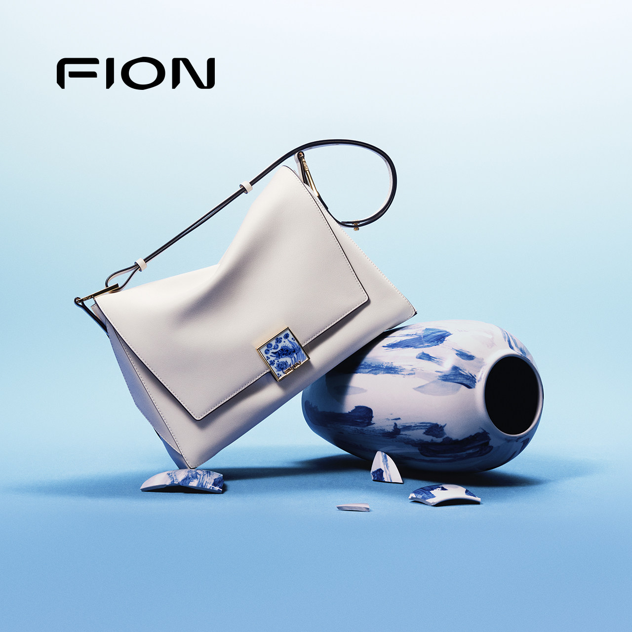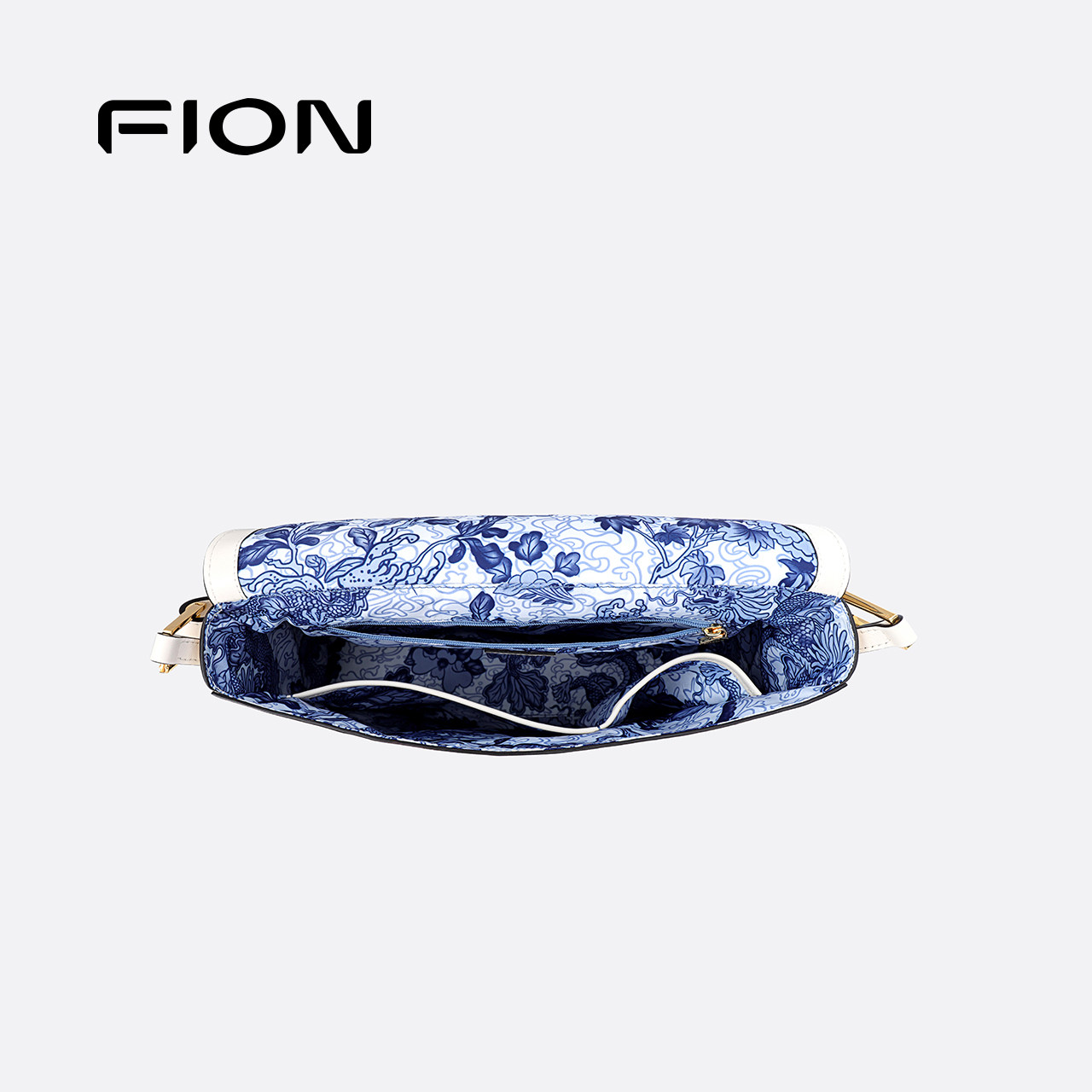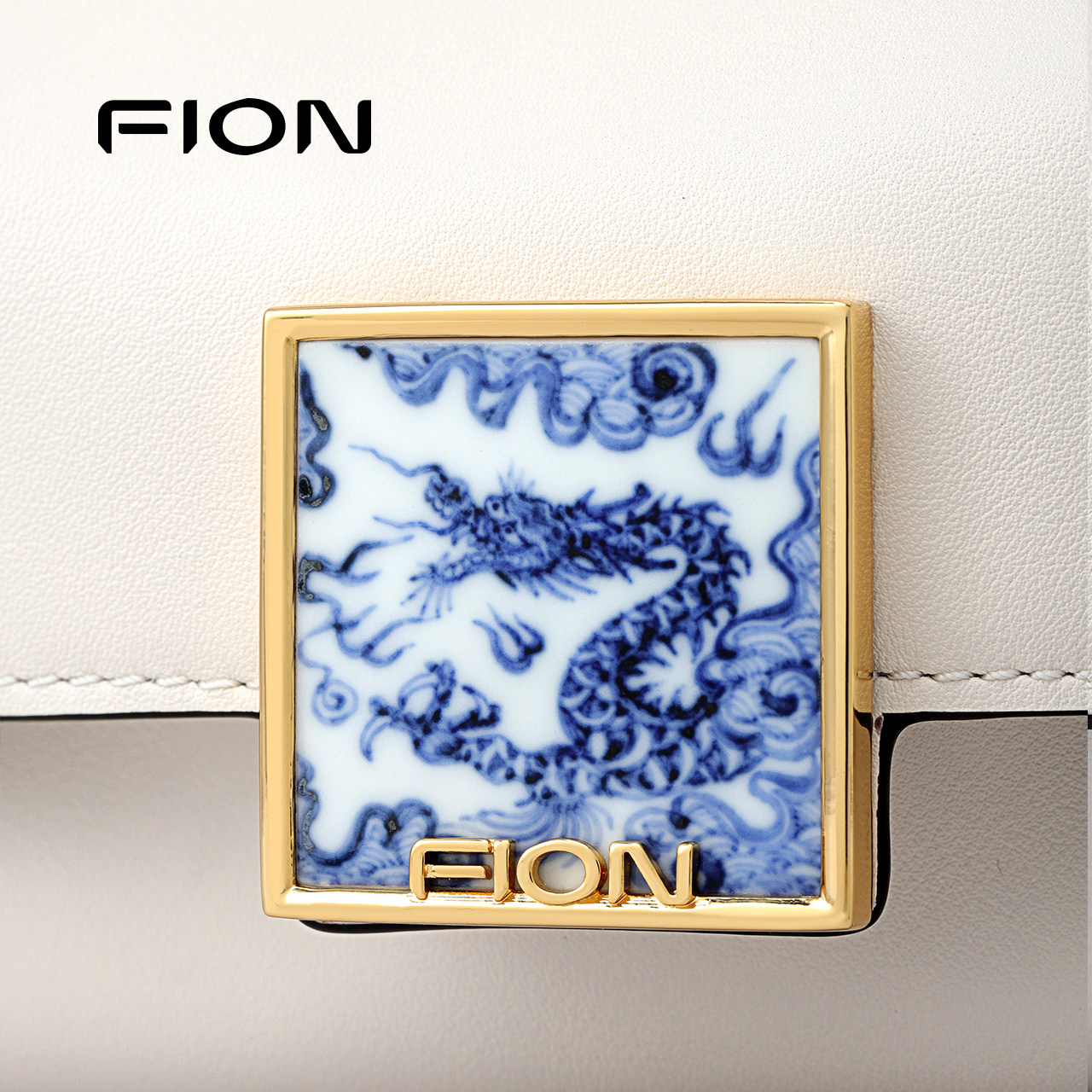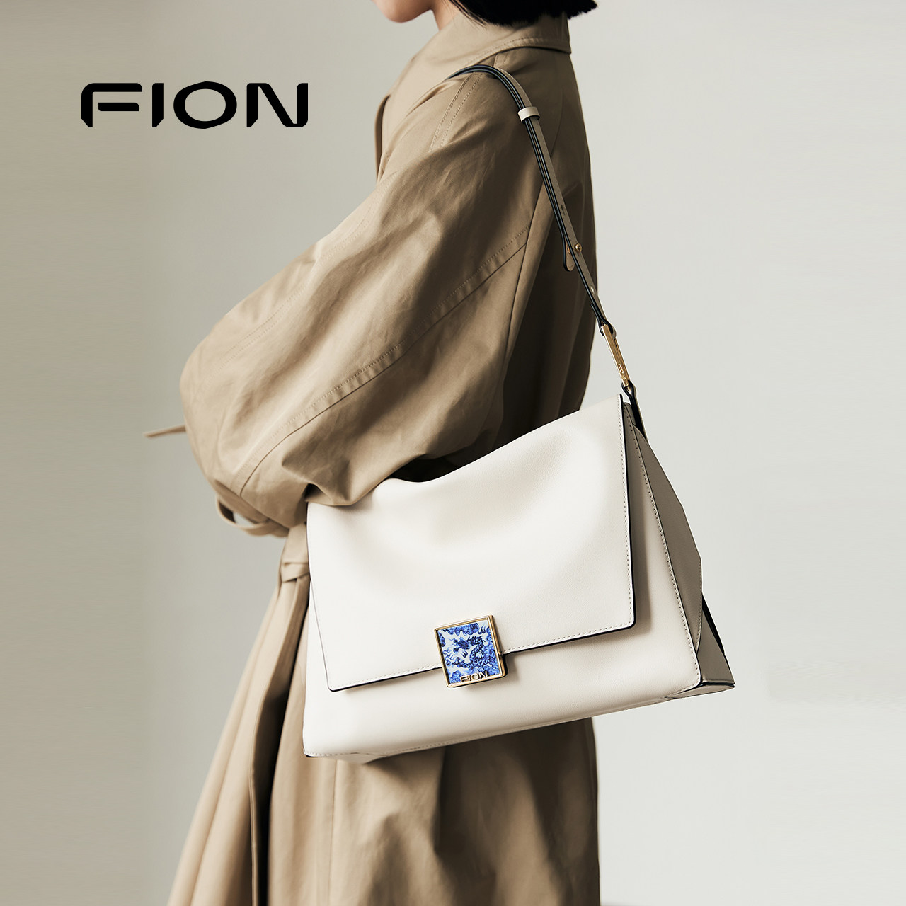 Fion/菲安妮皇窑青花瓷 叠叠包托特包头层牛皮通勤手提斜挎包女