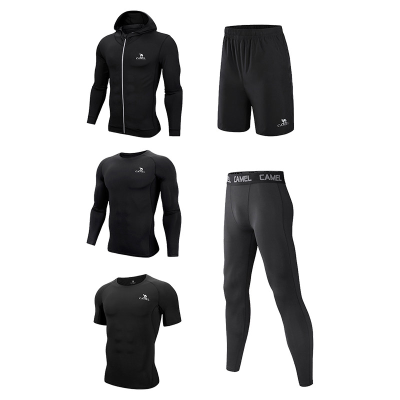 骆驼健身套装男2026新款运动跑步服高弹紧身篮球训练服速干五件套