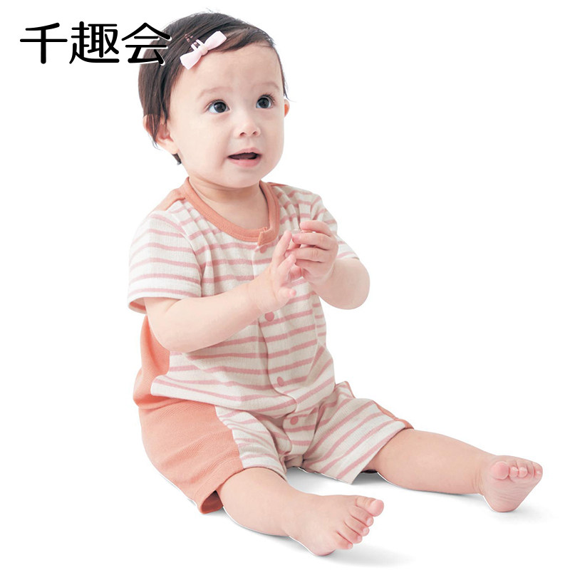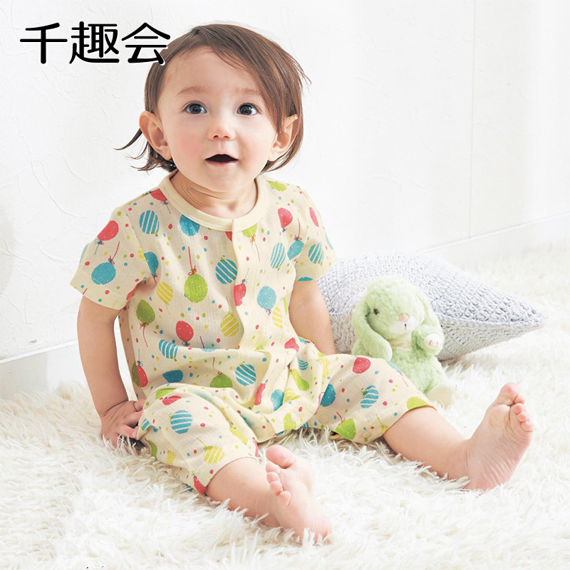 千趣会夏装婴幼儿连体衣服透气印花短袖蛙式男女宝宝哈衣爬服