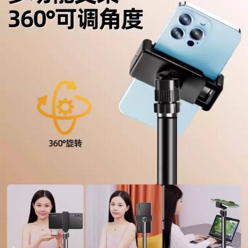 手机拍摄支架直播专用自拍杆三脚架落地式多功能支撑架通用捭机架户外便携伸缩升降网课考研复试架子三角支夹