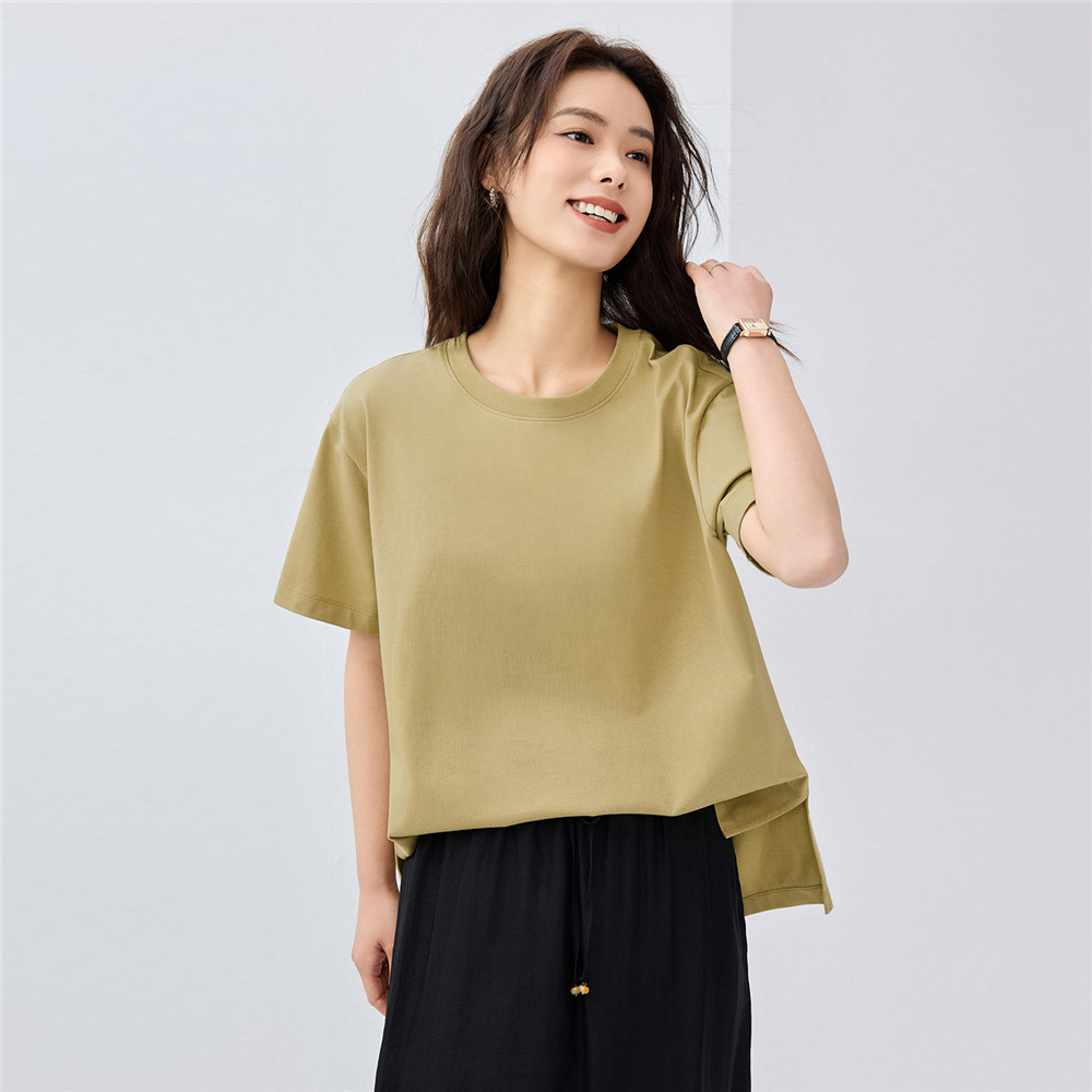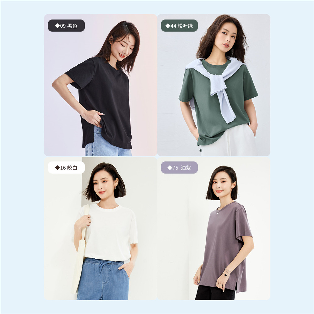 新国货100纯棉t恤女130支双面丝光棉短袖V圆领宽松大码夏季鸡心领