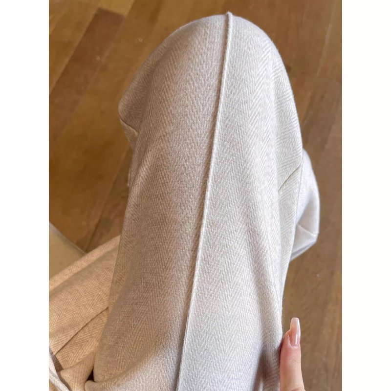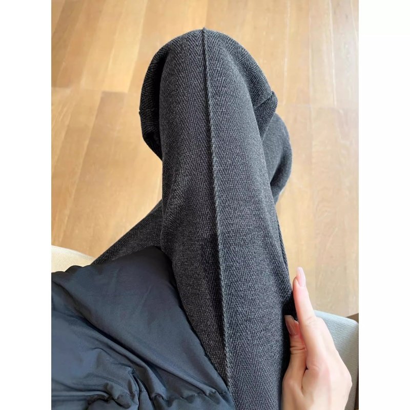 人字纹毛呢阔腿裤女2025新款秋冬加绒裤小个子窄版直筒裤大码加长
