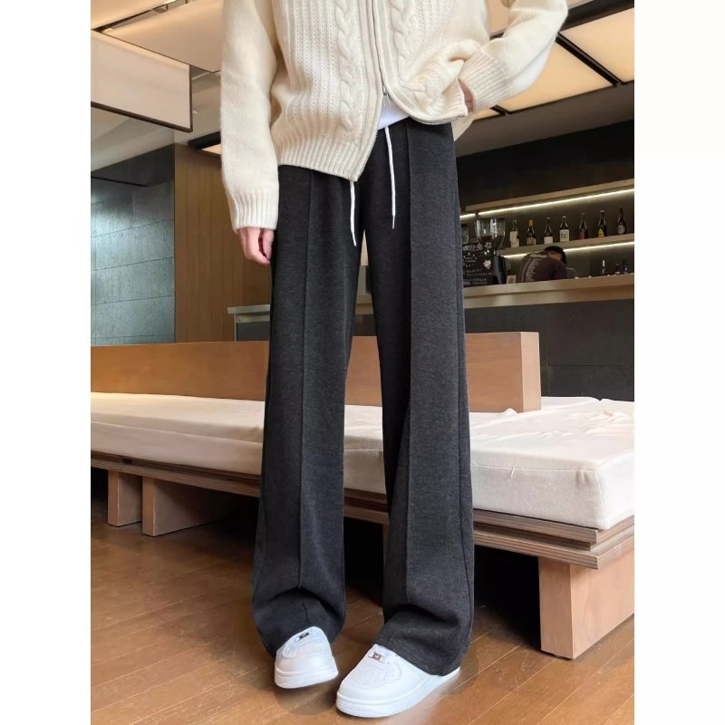 深灰色微喇休闲裤女2025秋冬加绒胖妹妹mm高腰弹力显瘦运动卫裤潮