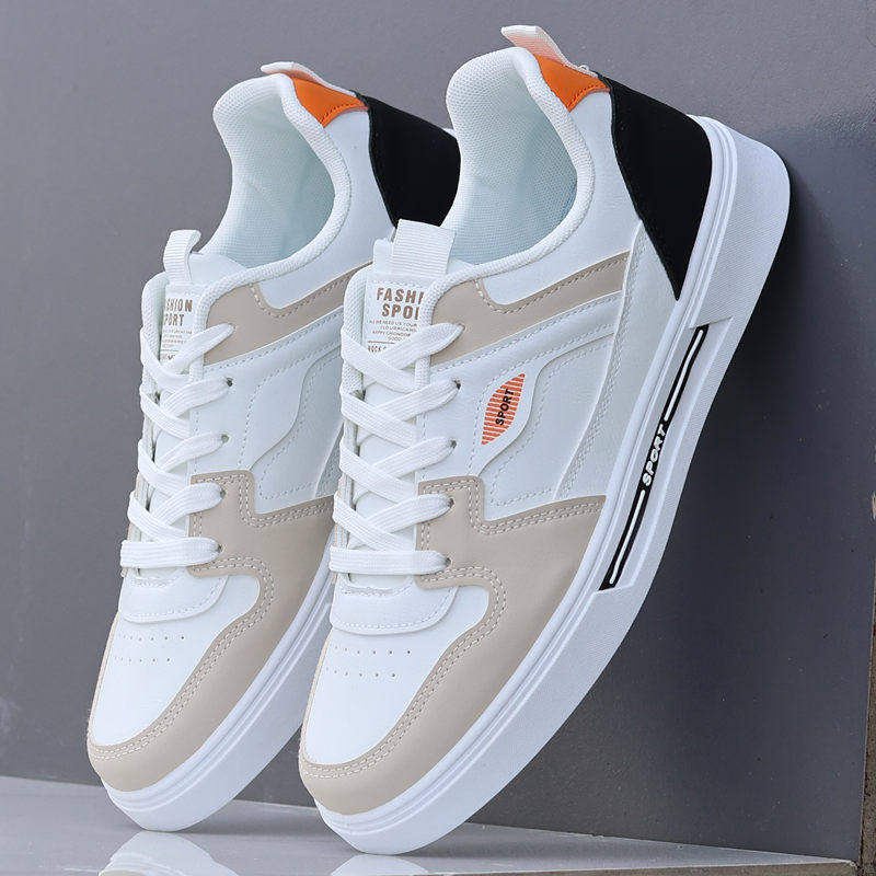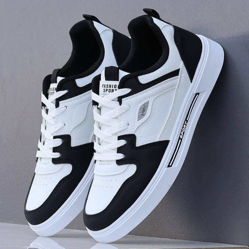 欧伦啄木鸟男鞋2024新款秋季皮面运动休闲板鞋子男士百搭潮流小白