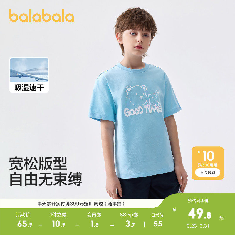 巴拉巴拉儿童短袖T恤男童女童上衣宝宝童装款速干夏装亲子款休闲