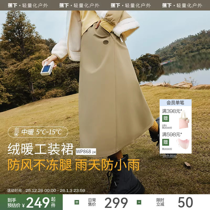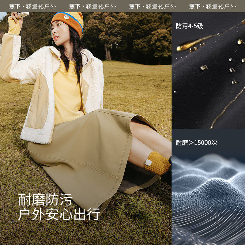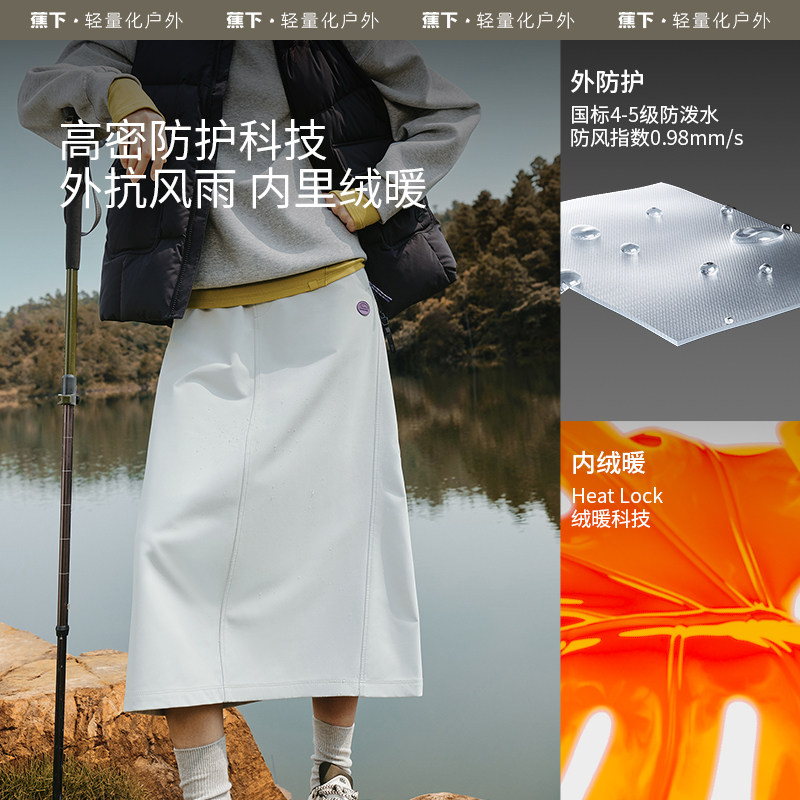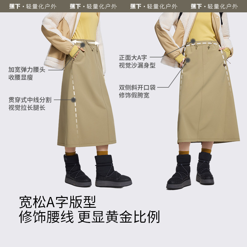 蕉下防风A字裙早秋新款加绒保暖长款白色半身裙通勤百搭工装裙