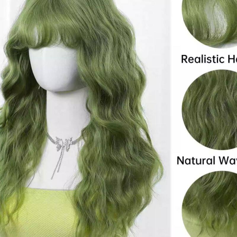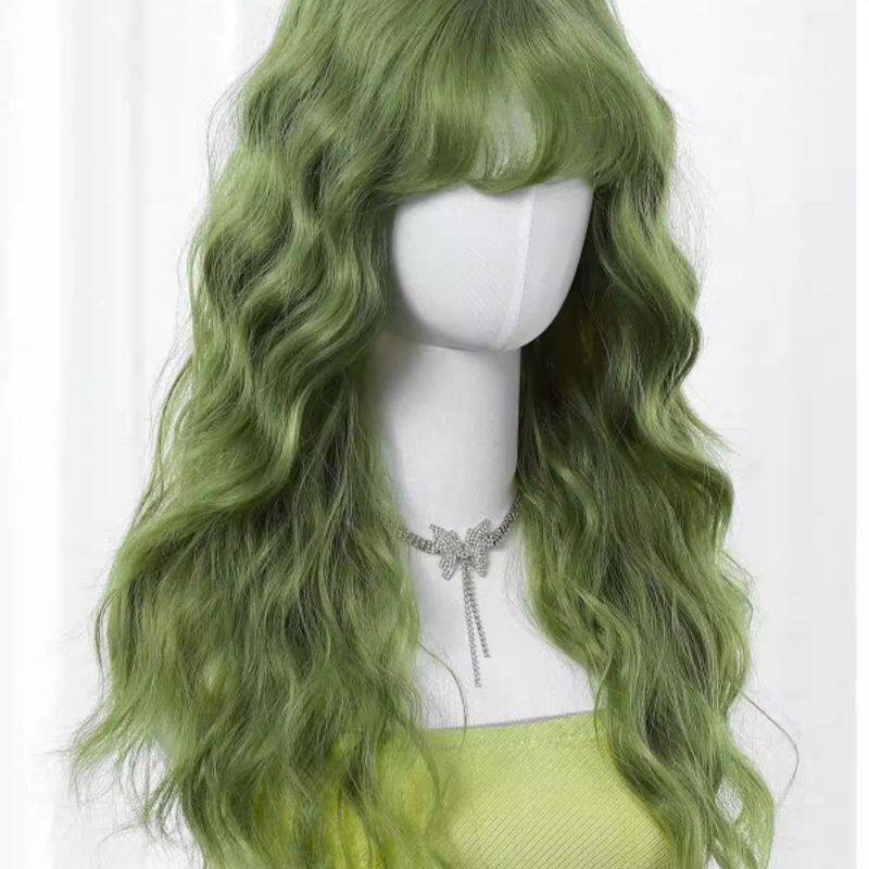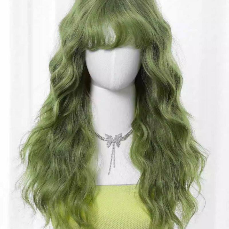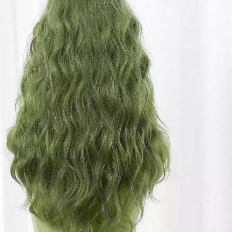牛油果绿色假发女网红羊毛卷氛围感亚比风复古整定假发头套长卷发