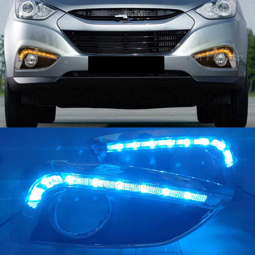 适用于现代10-12款ix35日行灯改装LED日间行车灯前雾灯流水转向灯