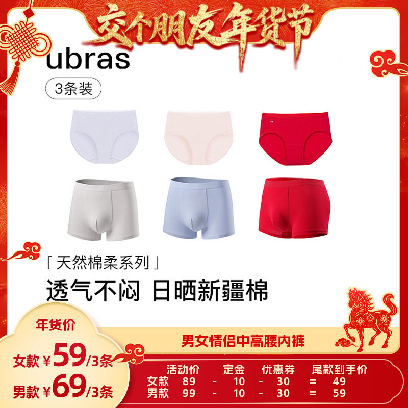 【交个朋友先加购1日早10付定】ubras40S纯棉抗菌裆情侣内裤3条装