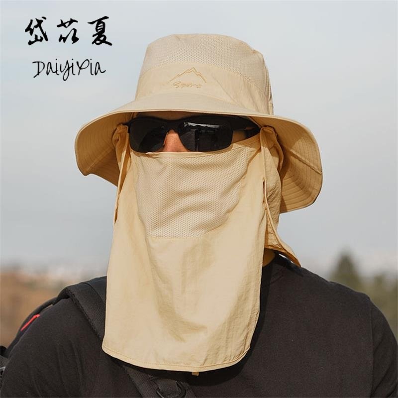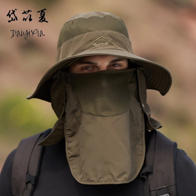 防晒帽男钓鱼帽夏季登山户外太阳帽遮脸面罩防紫外线护颈徒步遮阳