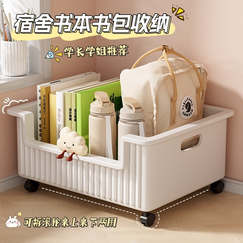 桌下书本书包收纳箱可移动滑轮书箱学生教室用桌面放书收纳盒书架
