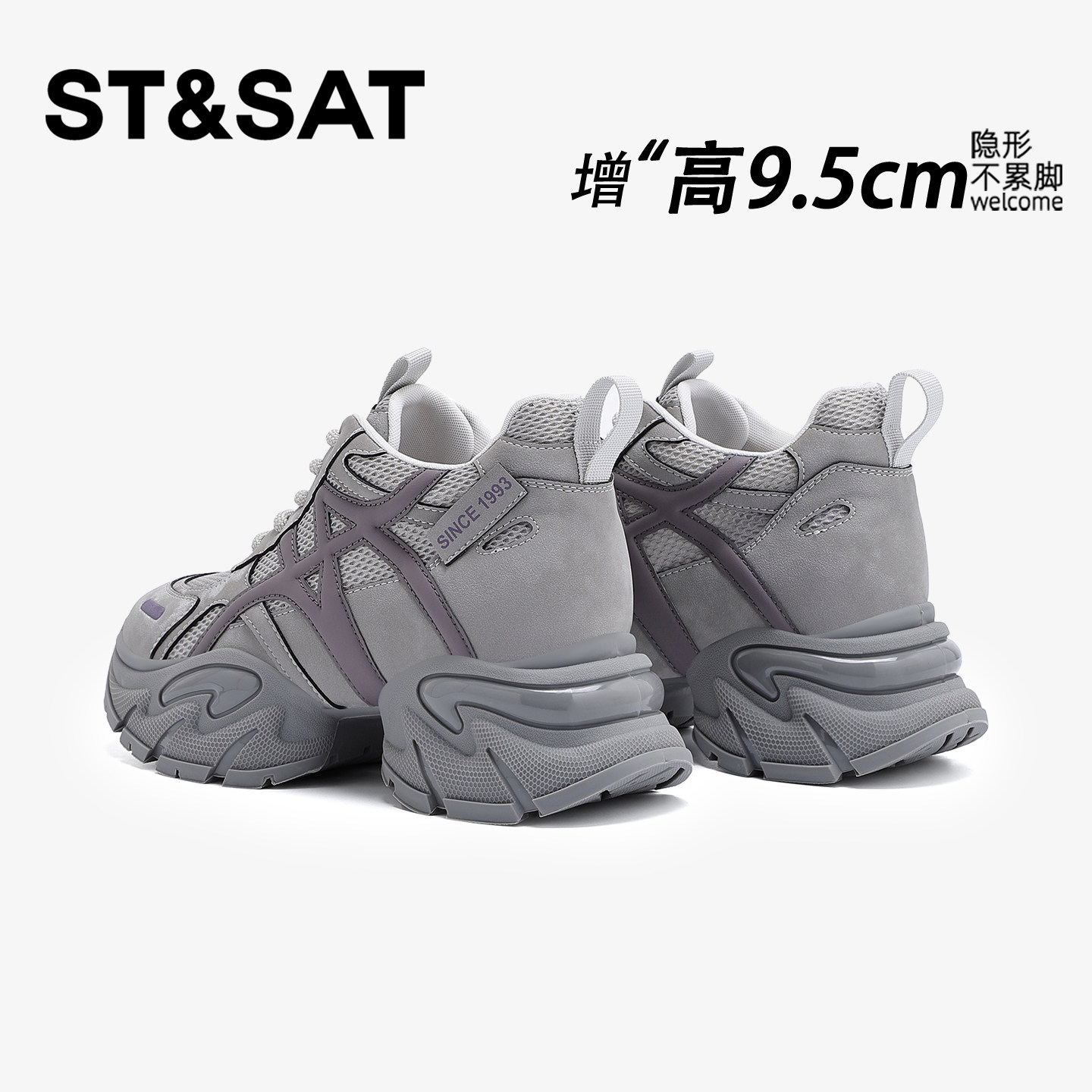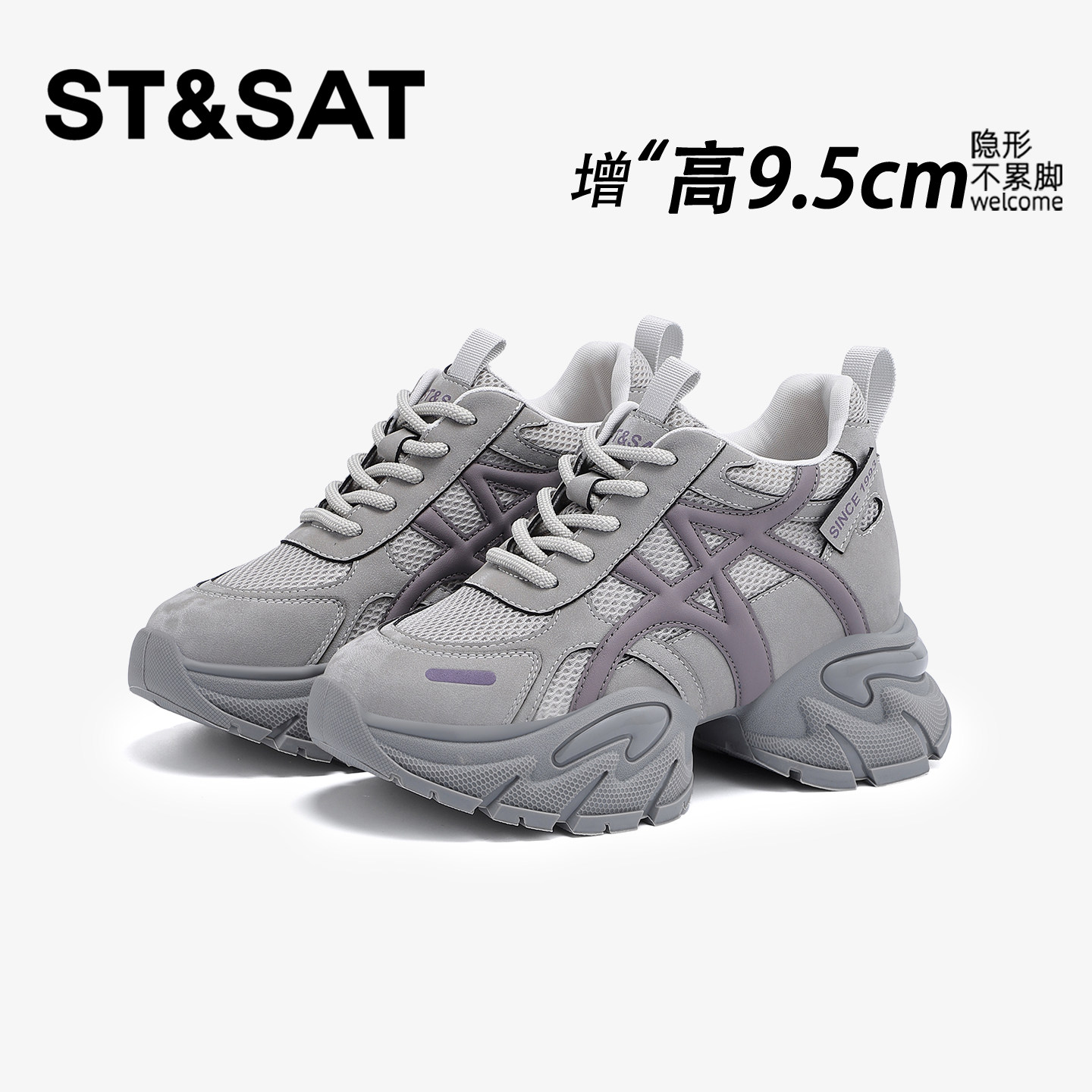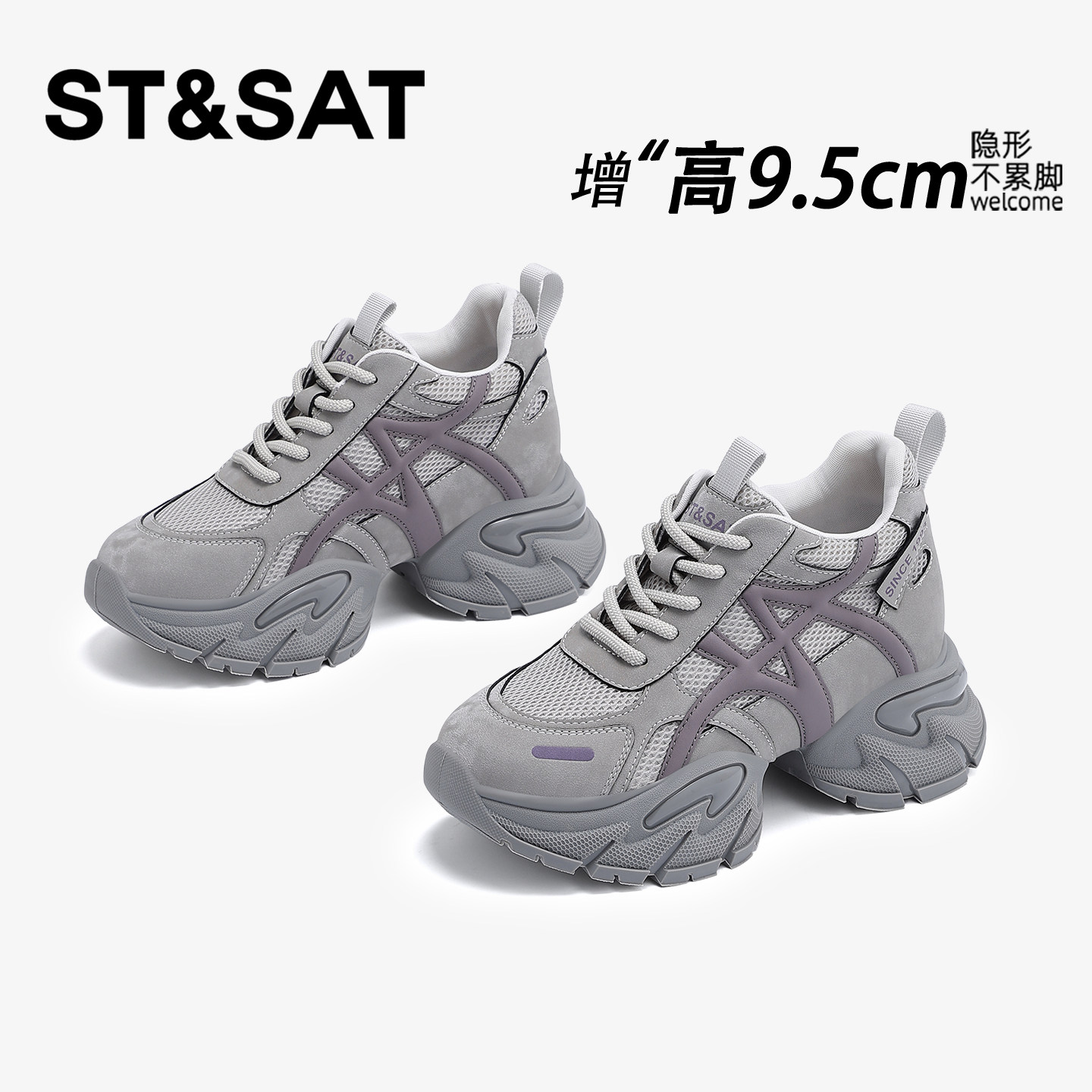 星期六9.5CM内增高超火灰色老爹鞋女款小个子德训百搭隐形增高鞋