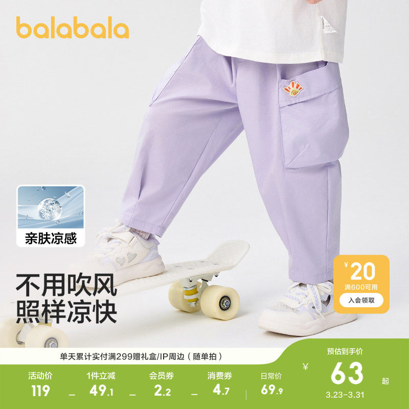 巴拉巴拉童装儿童裤子男童长裤女童夏装薄款2026休闲速干工装裤潮