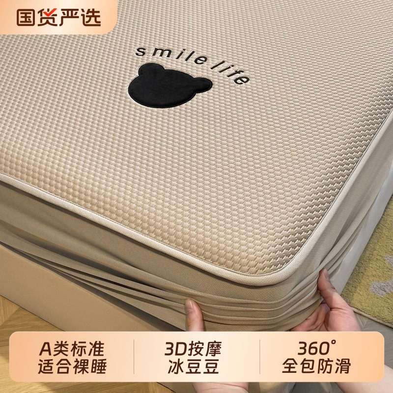 雅鹿夏季冰丝凉席床笠款2025冰豆豆软席子学生宿舍单人可机洗夏天