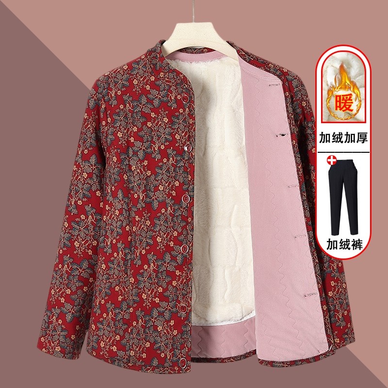 妈妈冬装碎花棉衣中老年人新款加绒贴片保暖棉服奶奶内外穿小棉袄