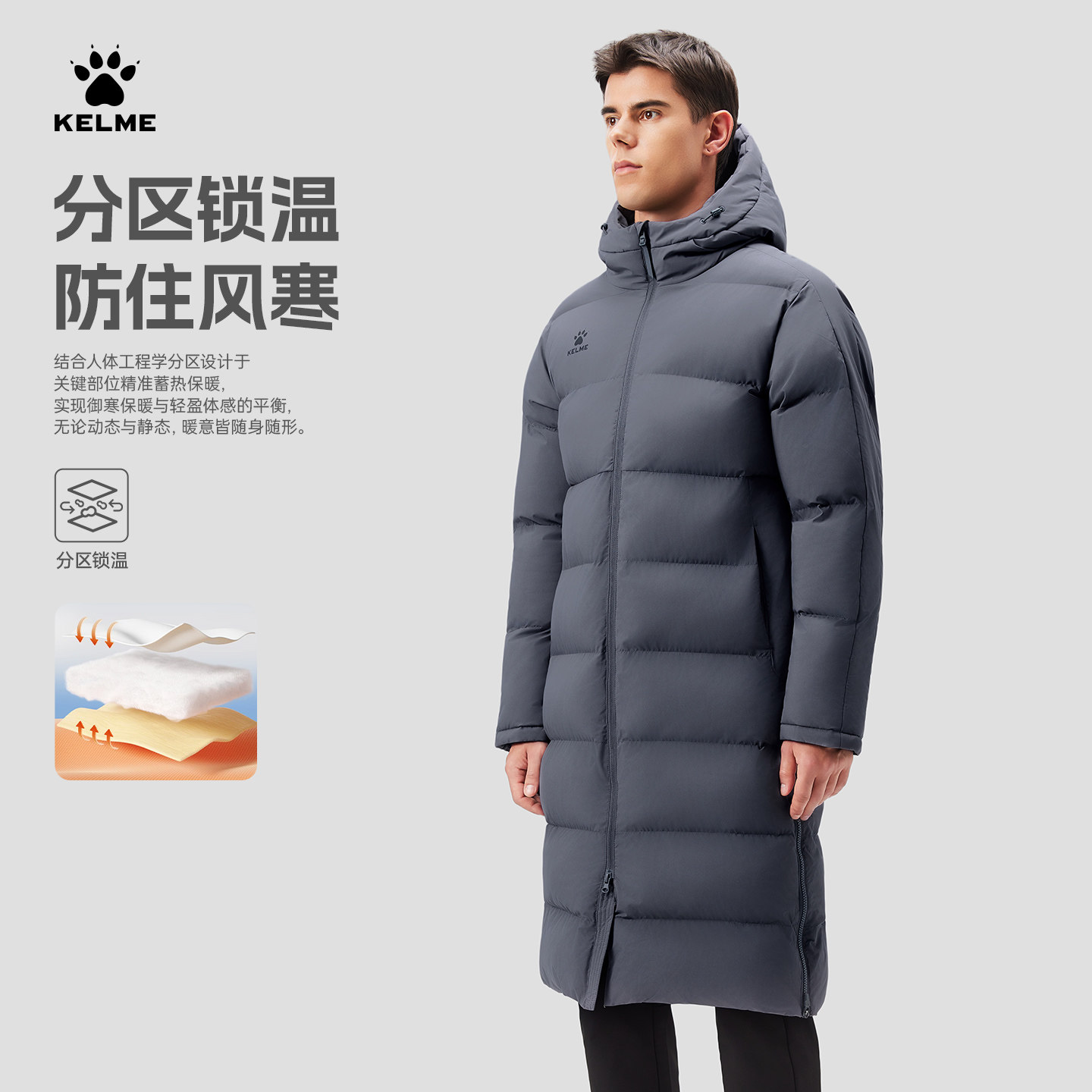 KELME卡尔美长款保暖棉衣男2025冬季过膝连帽足球大衣运动棉服厚