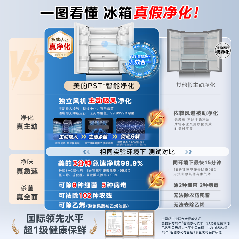美的283三开门电冰箱一级能效家用变频风冷无霜小型超薄官方租房