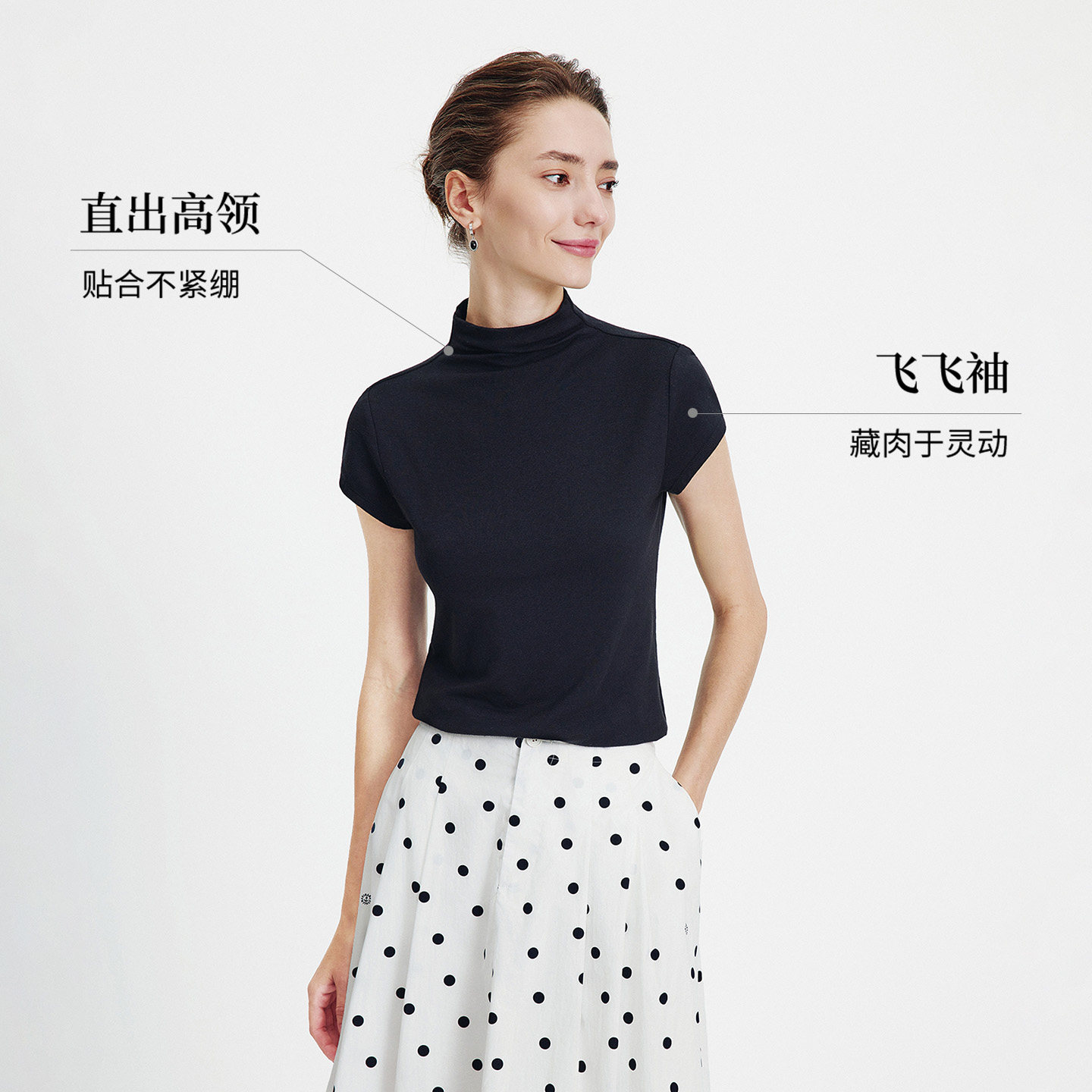 Navigare意大利小帆船黑色短袖T恤女2026春夏通勤高领修身体恤衫