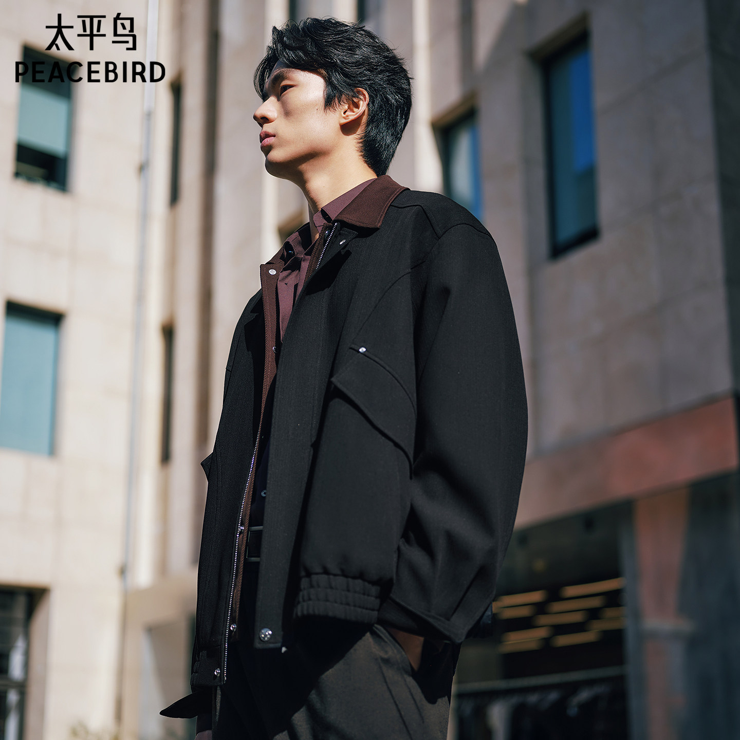 【巴恩风】太平鸟男装撞色拼接工装夹克宽松潮流休闲外套通勤茄克