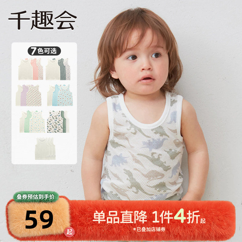 千趣会童装幼儿园宝宝夏装男女童无袖网眼透气T恤背心打底衫3件装