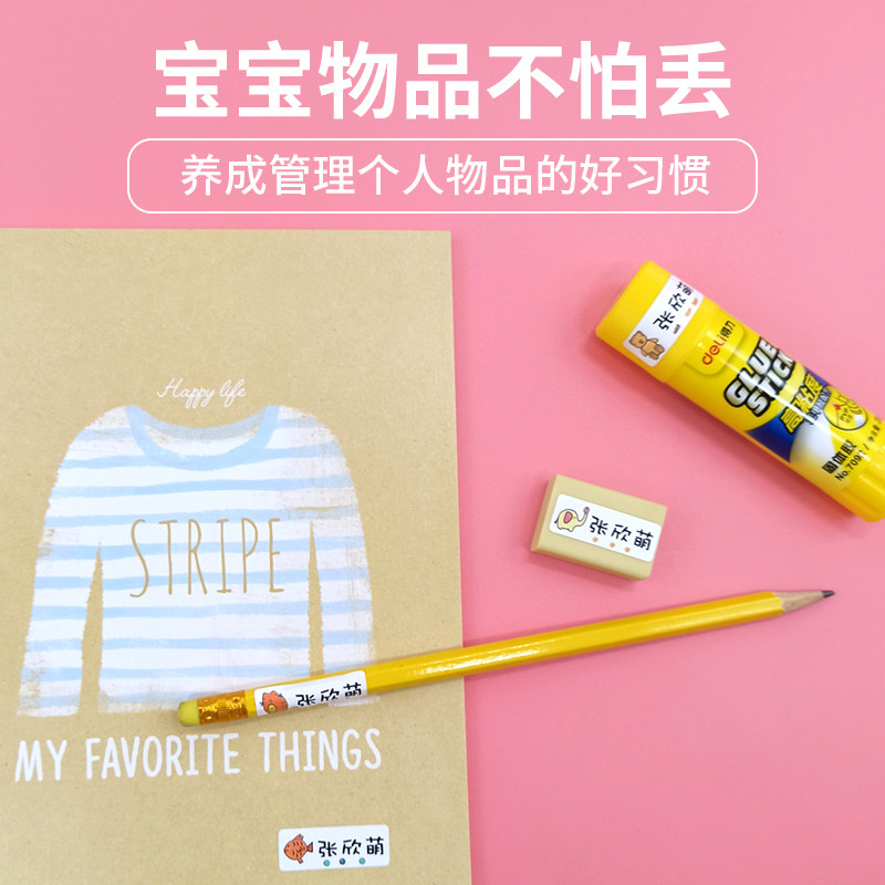 猫太子小学生专用姓名贴名字贴幼儿园儿童防水标签贴纸学习用品标记分类不干胶口取纸不留胶水杯收纳粘贴记号