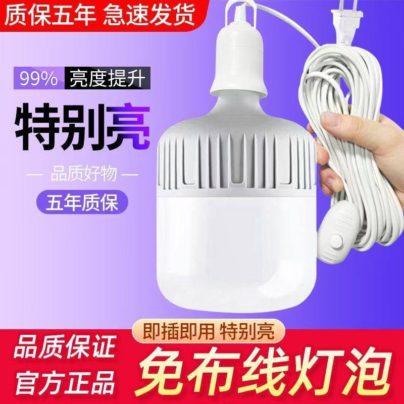 LED灯泡家用照明灯插电插座灯E27螺口灯座悬挂式带插头超亮节能灯