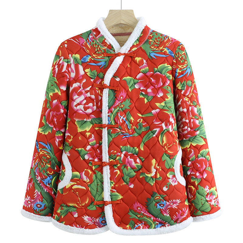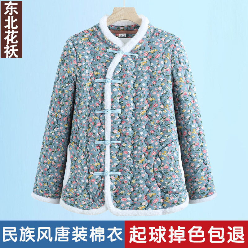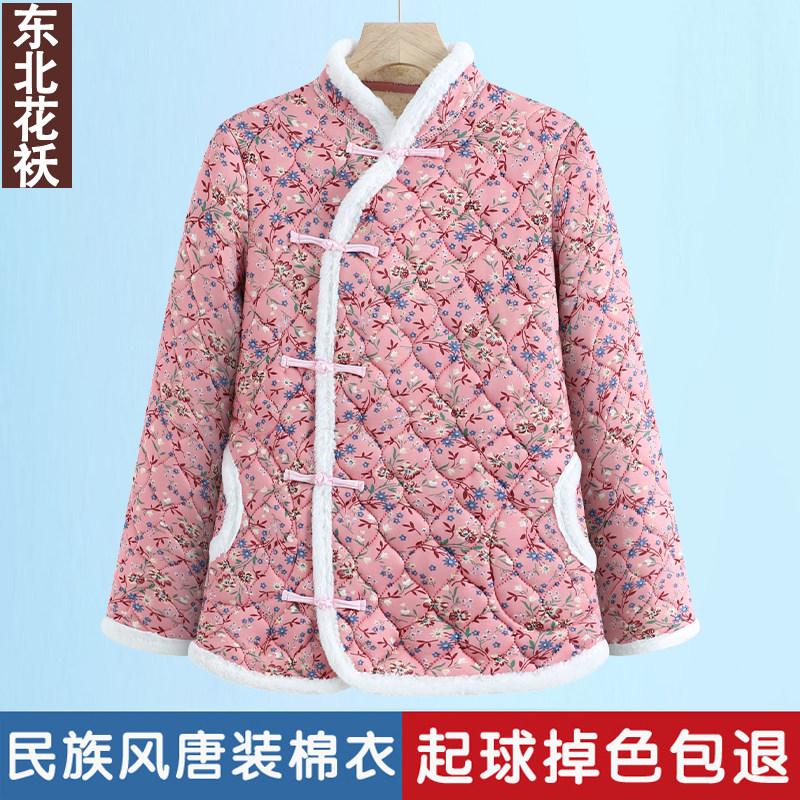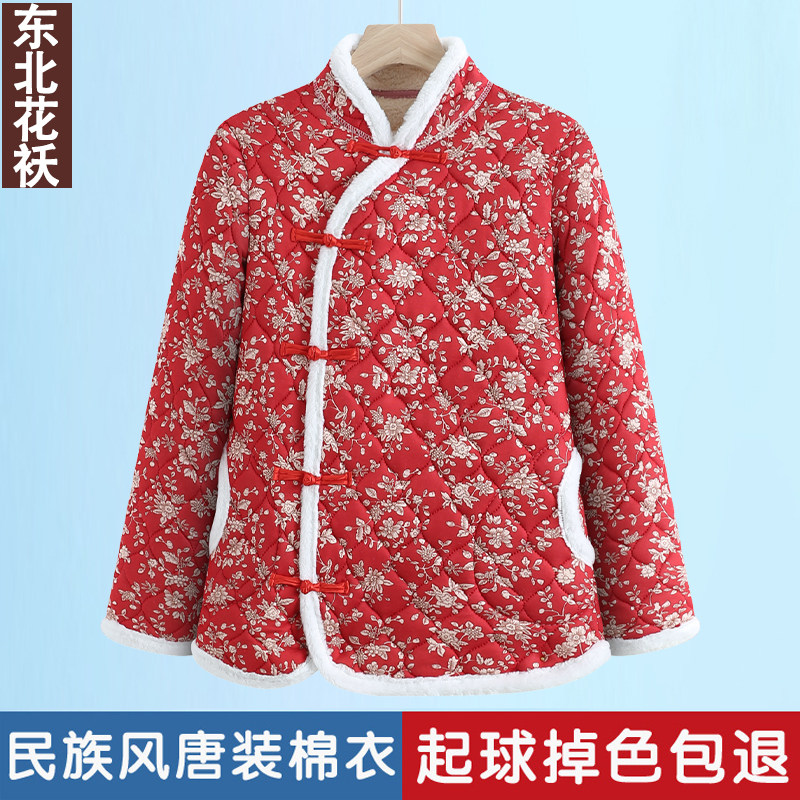 妈妈民族风唐装复古棉衣女东北大花棉袄中国风盘扣拜年棉服外套厚