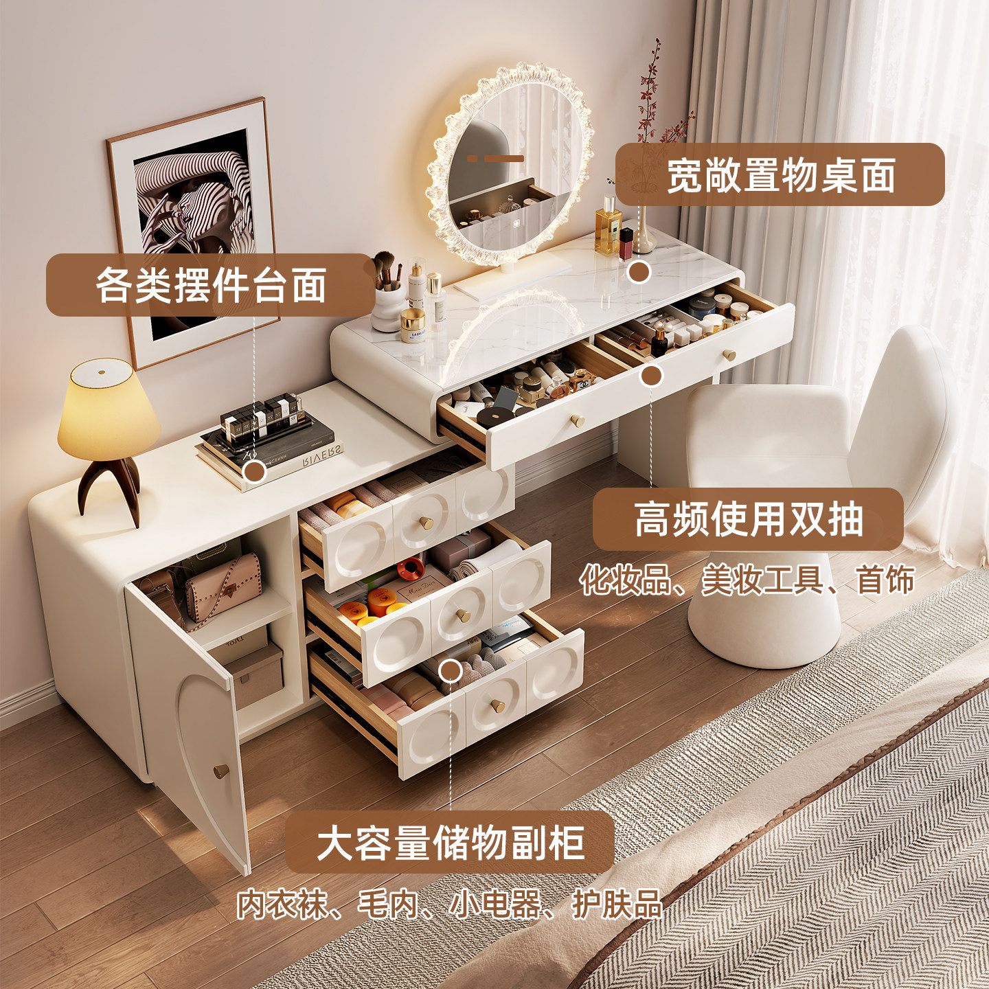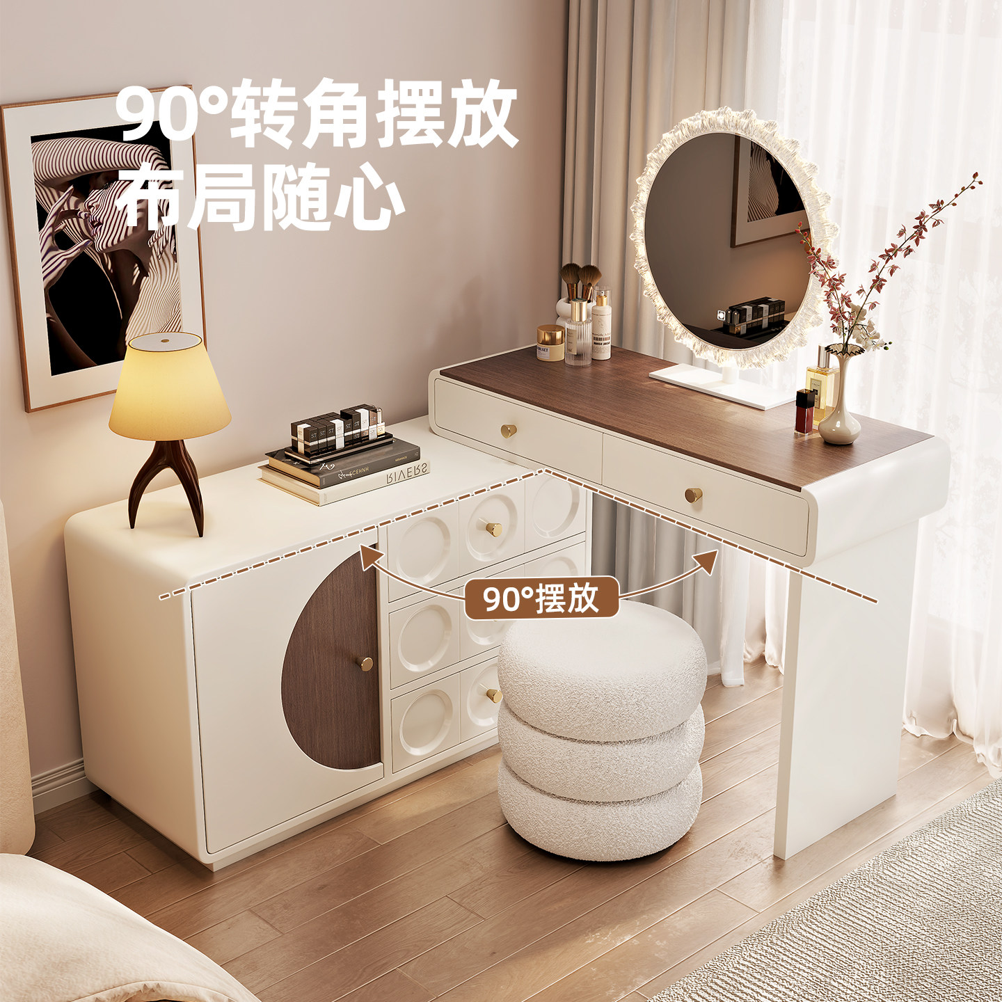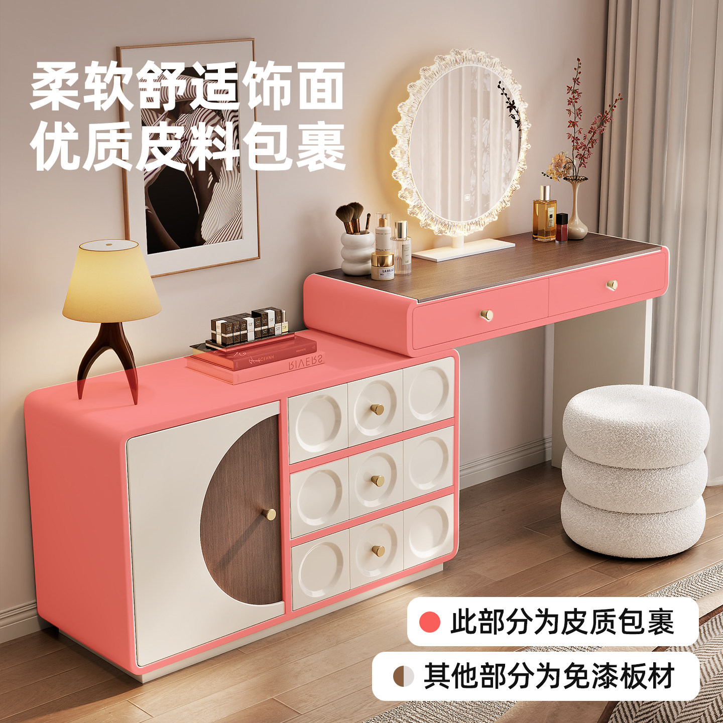 中古梳妆台床尾斗柜一体书桌实木化妆台卧室现代简约转角小化妆桌