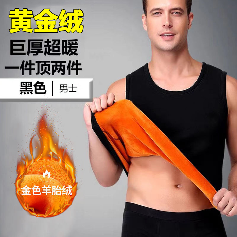 冬季保暖内衣背心男士加绒加厚东北圆领大码中老年人打底马甲上衣