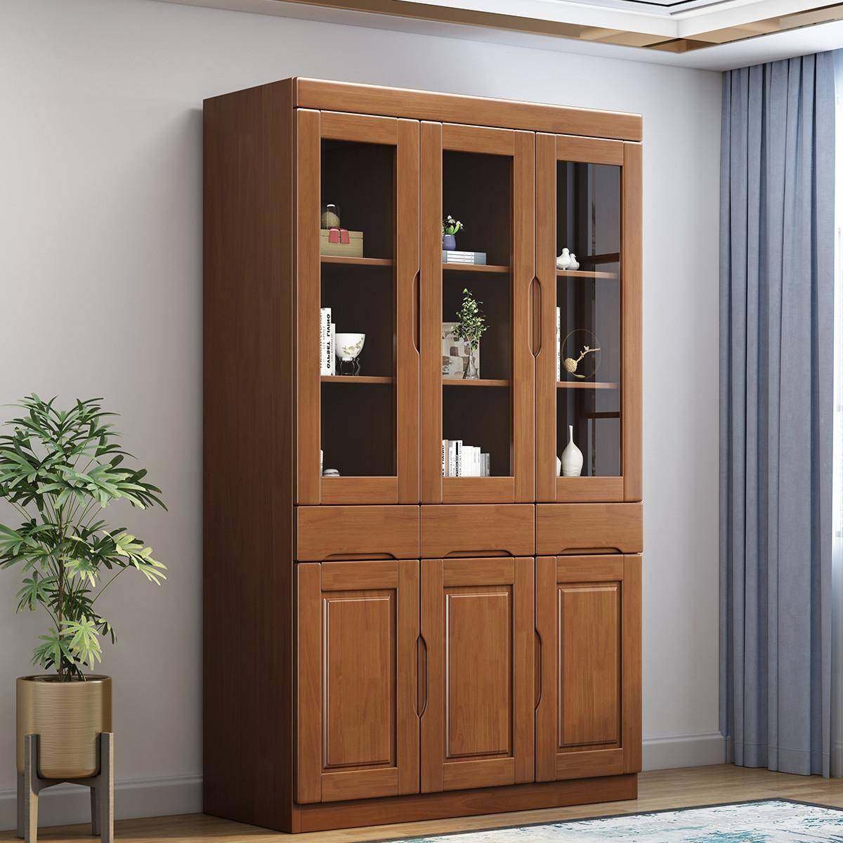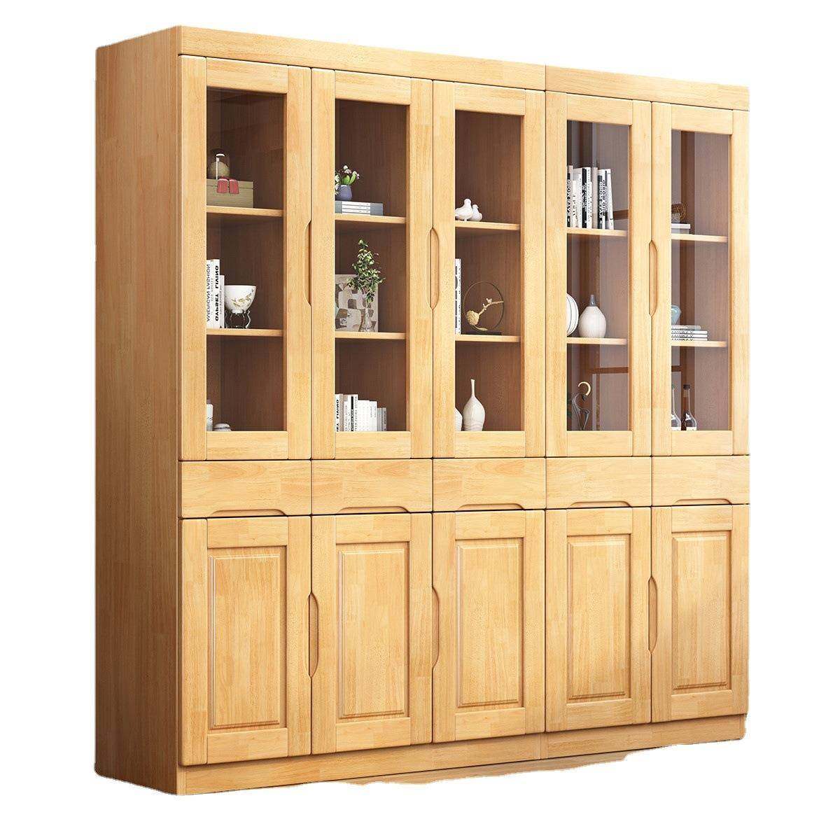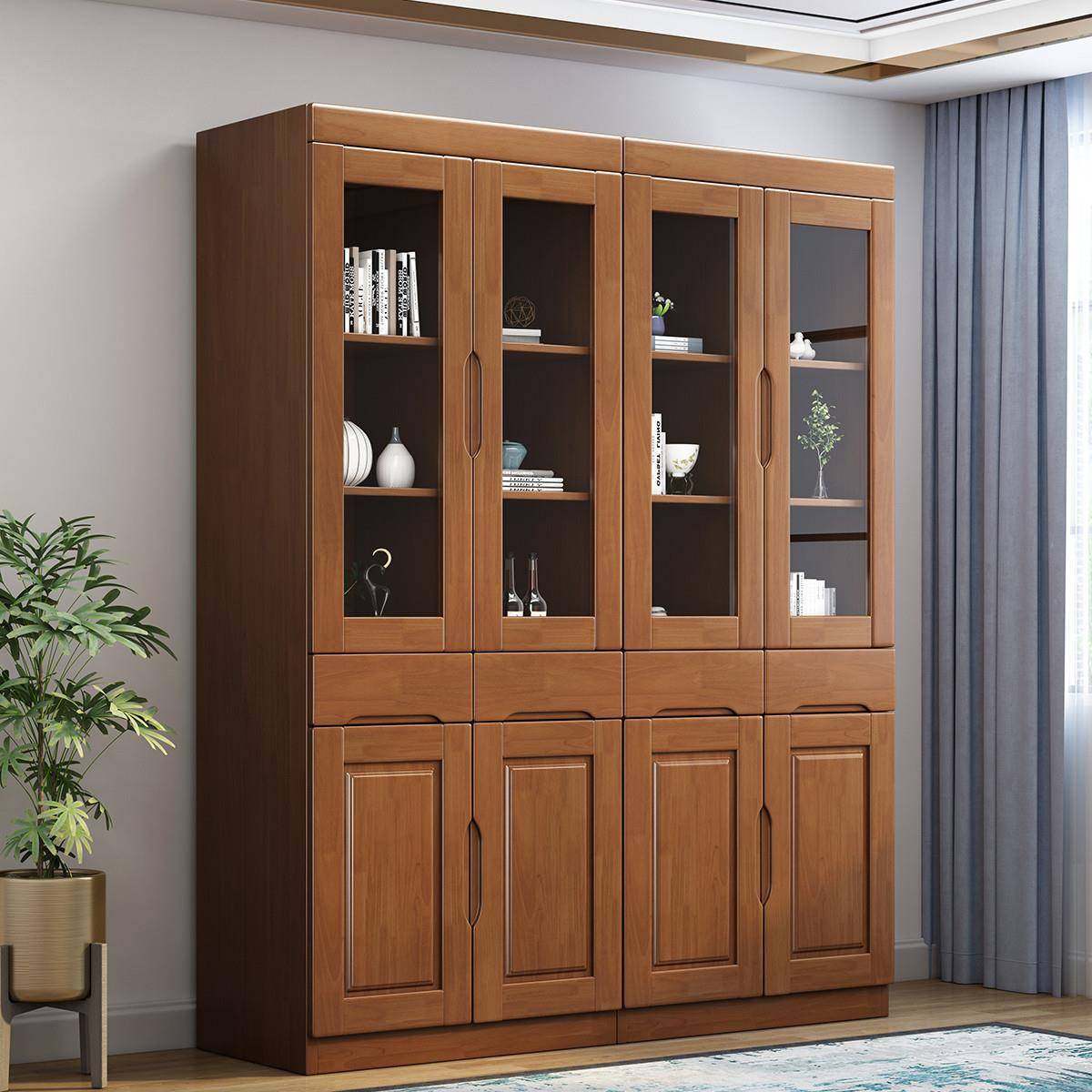 实木书架带玻璃门文件收纳储物橱架柜子现代简约中式书房家具