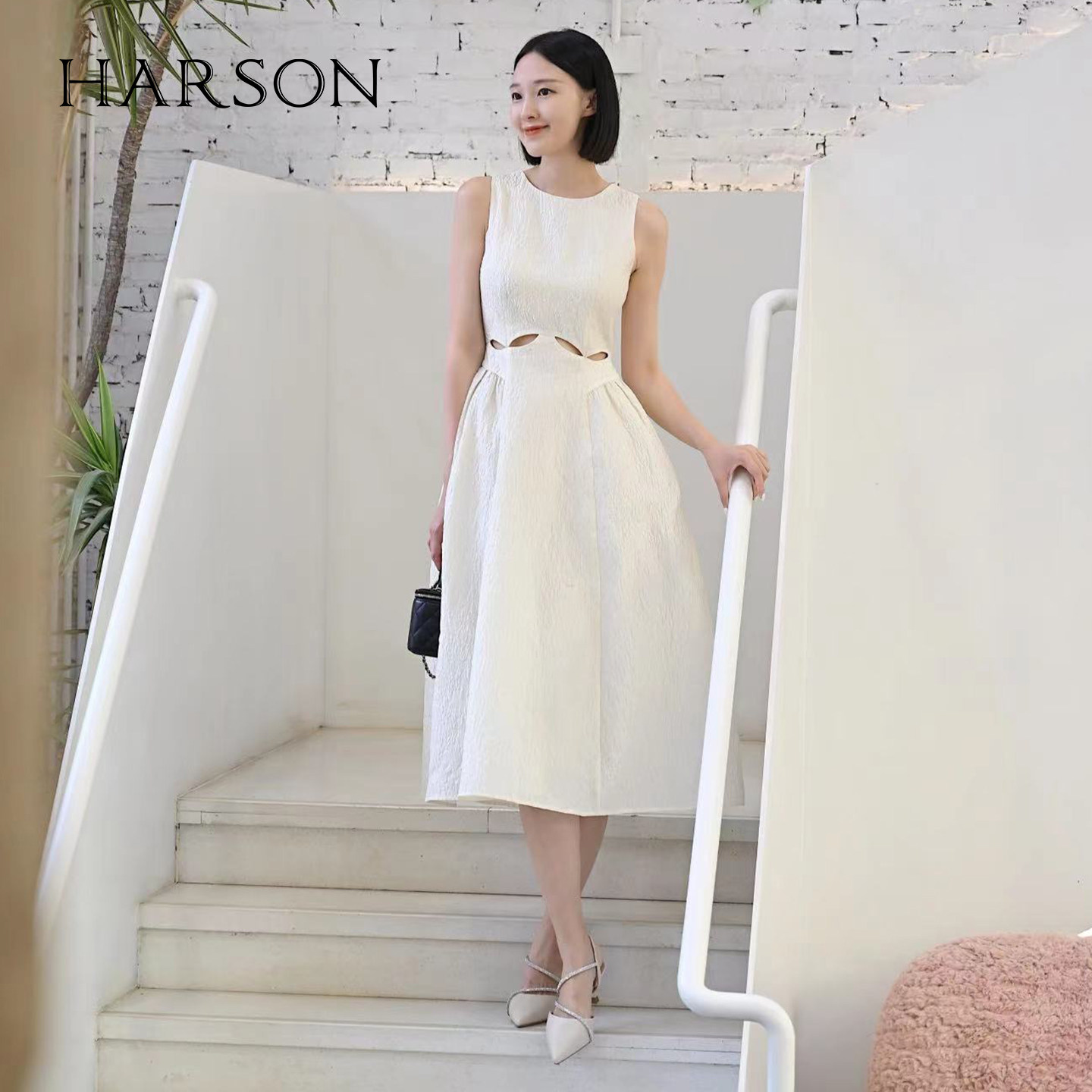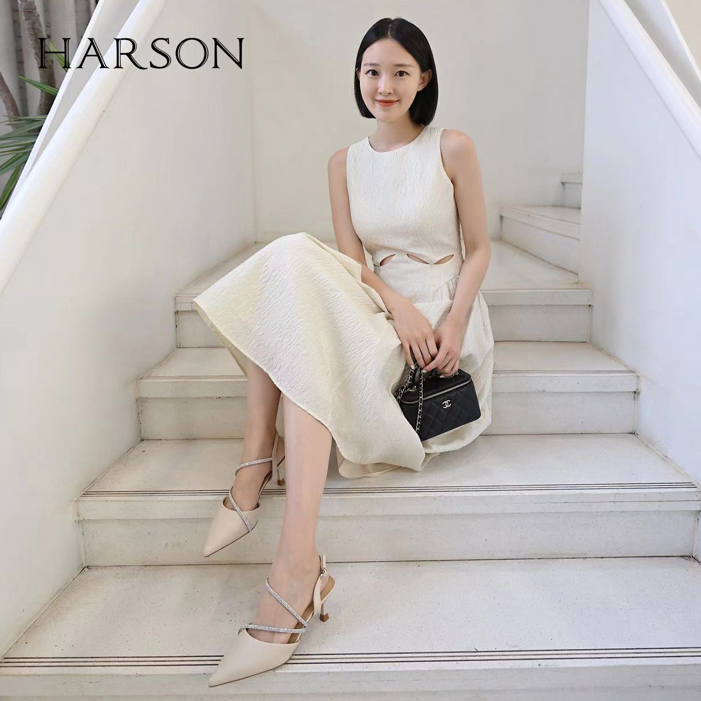 哈森包头凉鞋女夏季新款法式白色尖头细高跟凉鞋宴会鞋HM232517