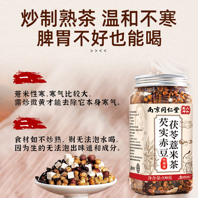 南京同仁堂芡实赤小豆薏米茯苓茶祛去湿气排脾胃养生茶三蒸三晒AA