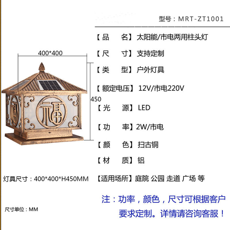 公园广场庭院住宅区道路照明LED太阳能庭院柱头草坪景观户外壁灯