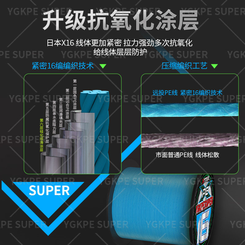 进口YGKPESUPER16编pe线路亚专用打黑大力马鱼线原丝远投蓝色耐磨