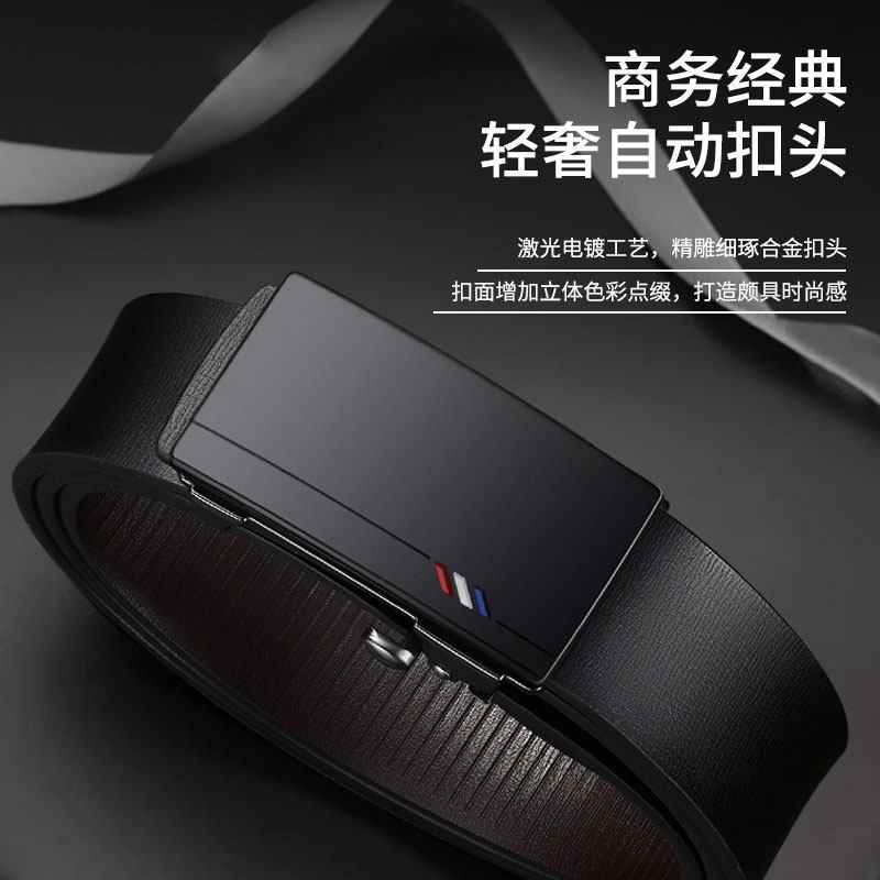 日本2026新款皮带男士裤腰带年轻潮商务简约自动扣裤带结婚真牛皮