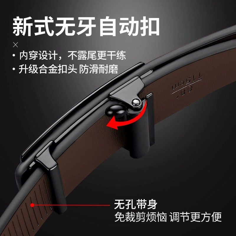 内穿男士皮带纯牛皮无牙扣正品自动扣真皮裤商务休闲百搭腰带男友