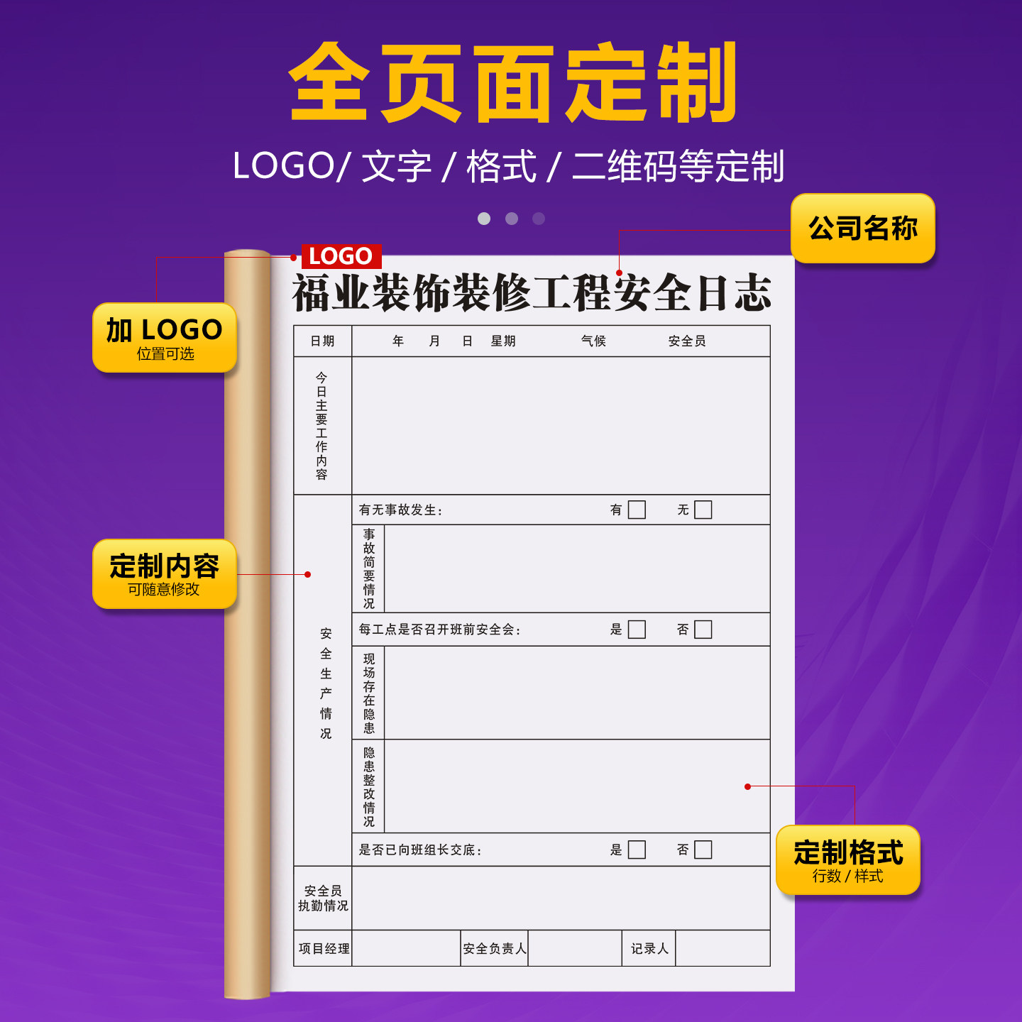 【装修安全日志】定制施工单位室内装潢质量巡查记录本工地现场安全监理日记本房屋市政工程监督检查施工日志