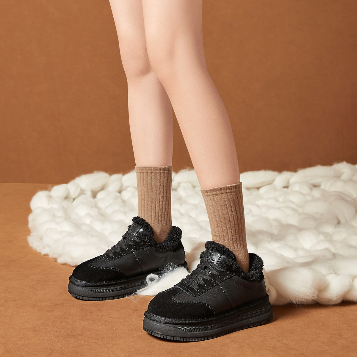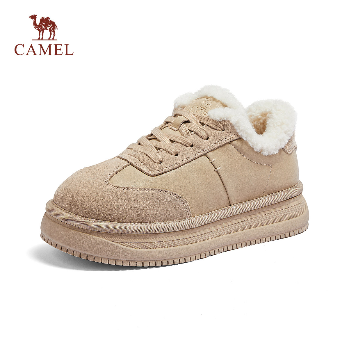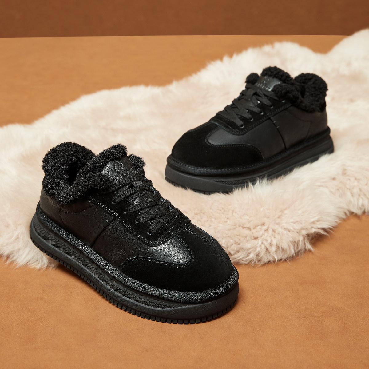 骆驼女鞋2025冬季低帮系带防滑加绒保暖棉鞋厚底雪地靴女
