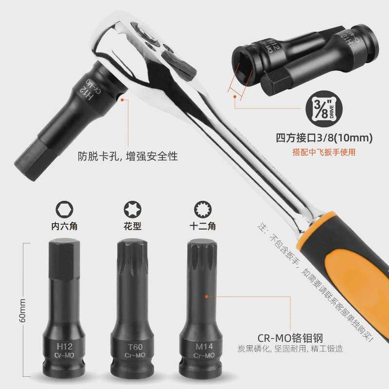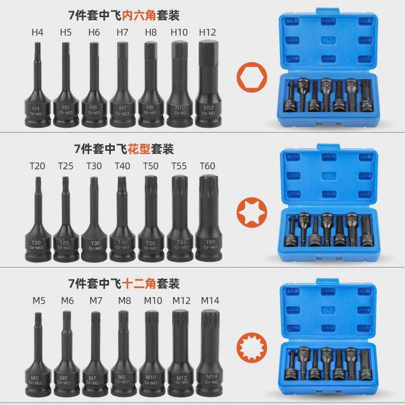 内六角扳手套筒内六花12角梅花批头m10t30t45t50气动工具旋具套筒