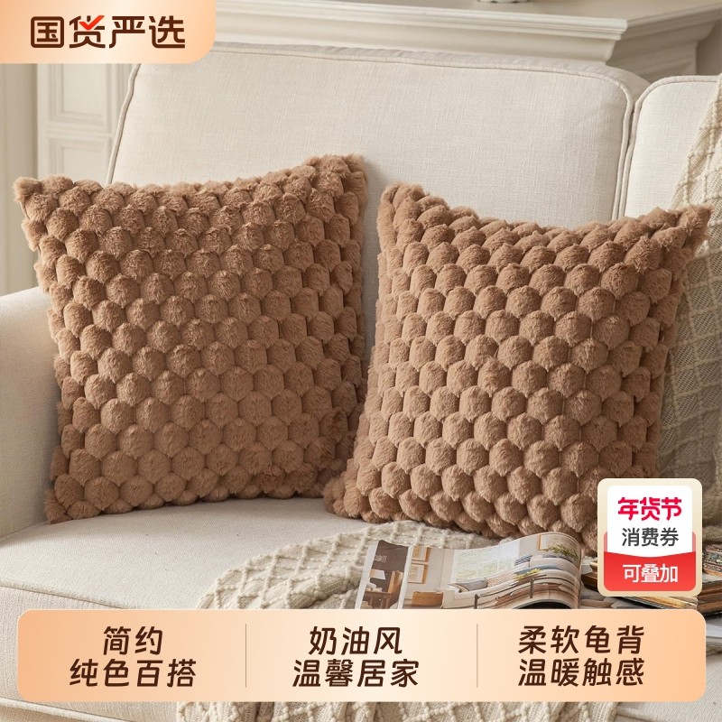 轻奢毛绒抱枕套客厅沙发单人靠枕靠背床头靠垫套方形简约可拆洗
