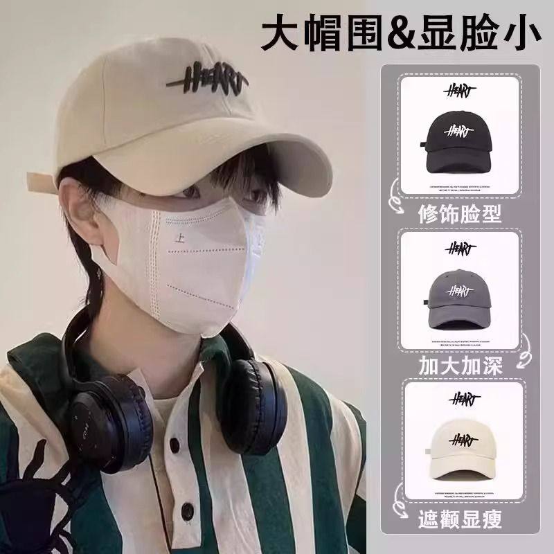 大头棒球帽棒球帽子男女新款四季刺绣加大加宽显脸鸭舌男白色灰色