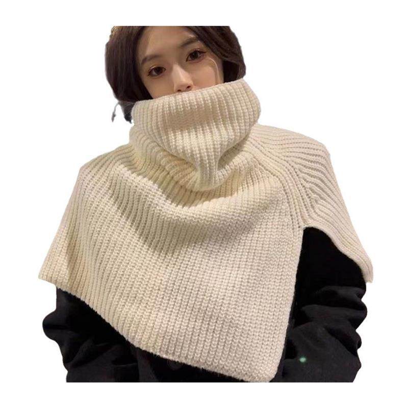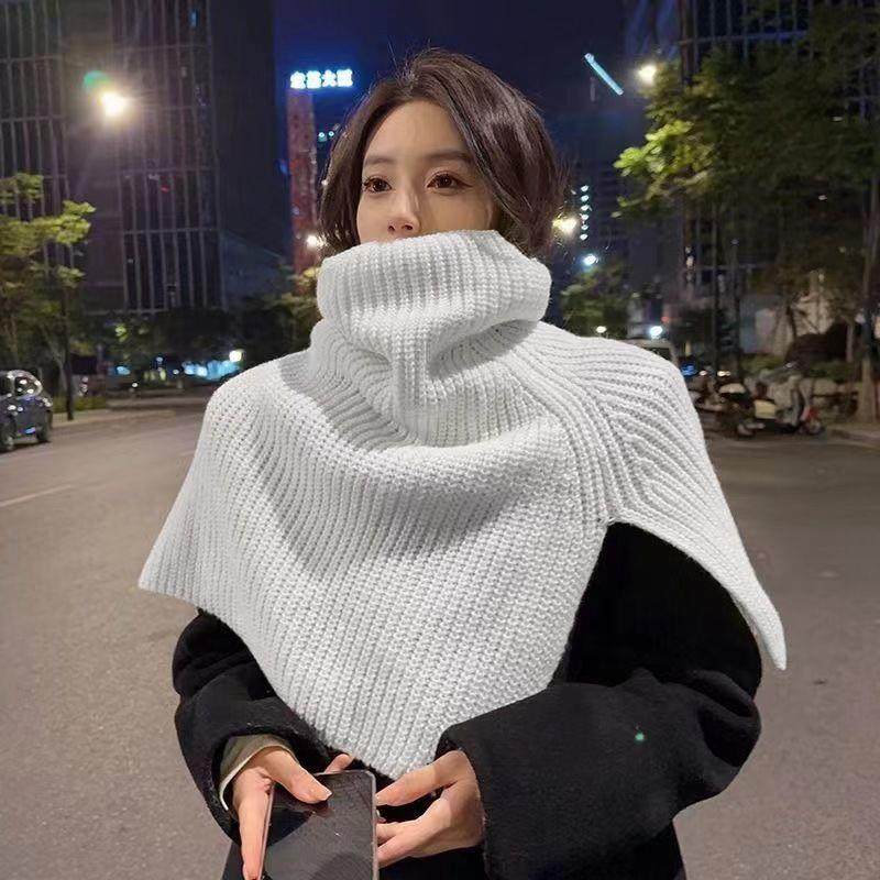 套头高领围脖女冬季保暖针织围巾护脖假领子披肩斗篷白色灰色米色