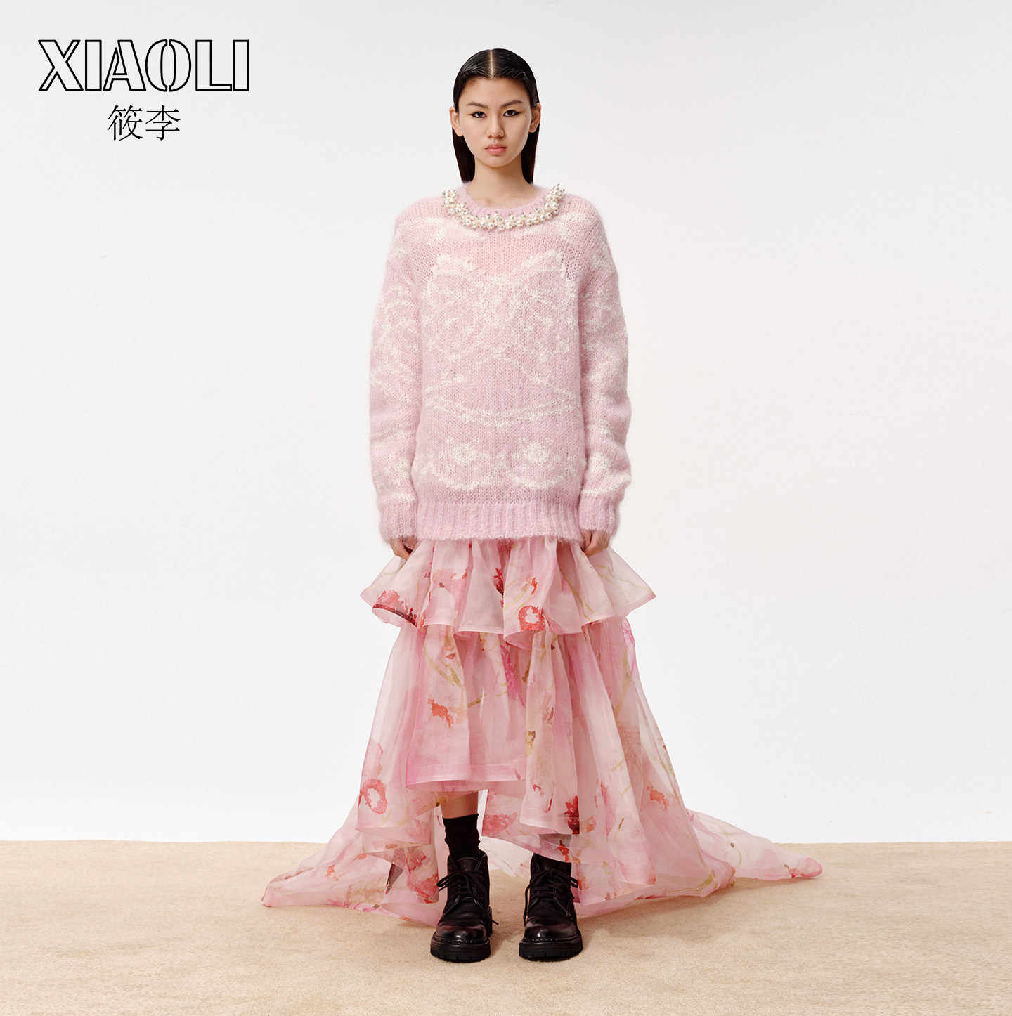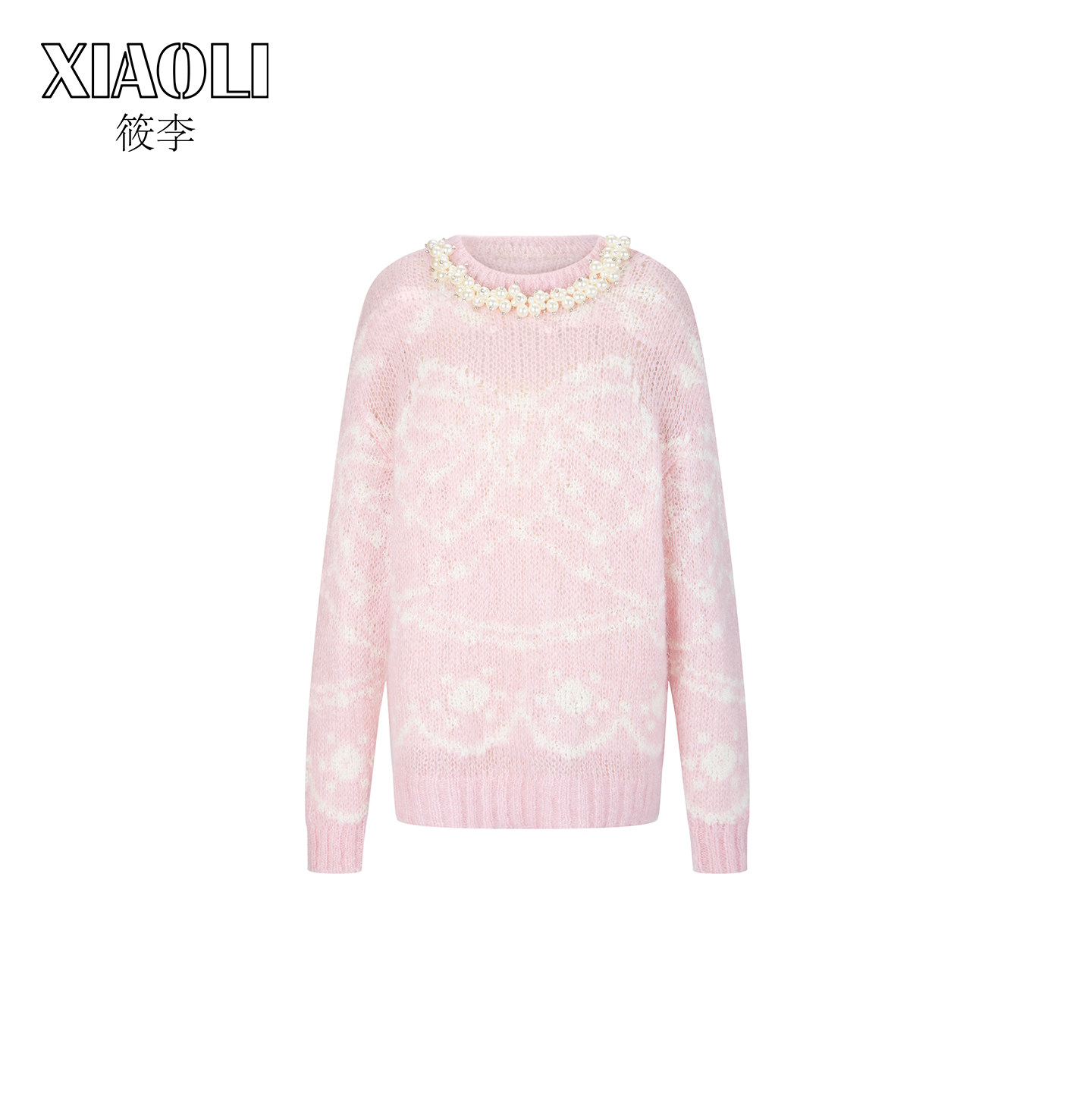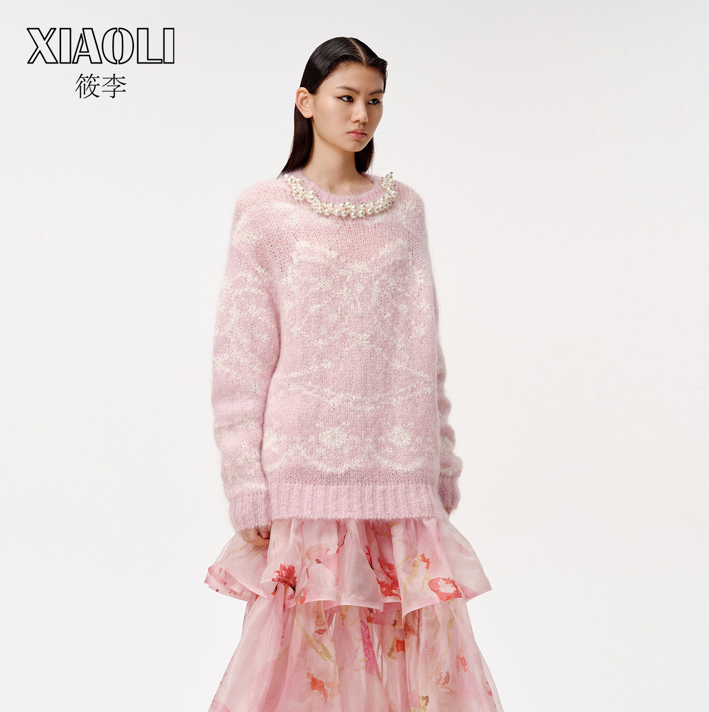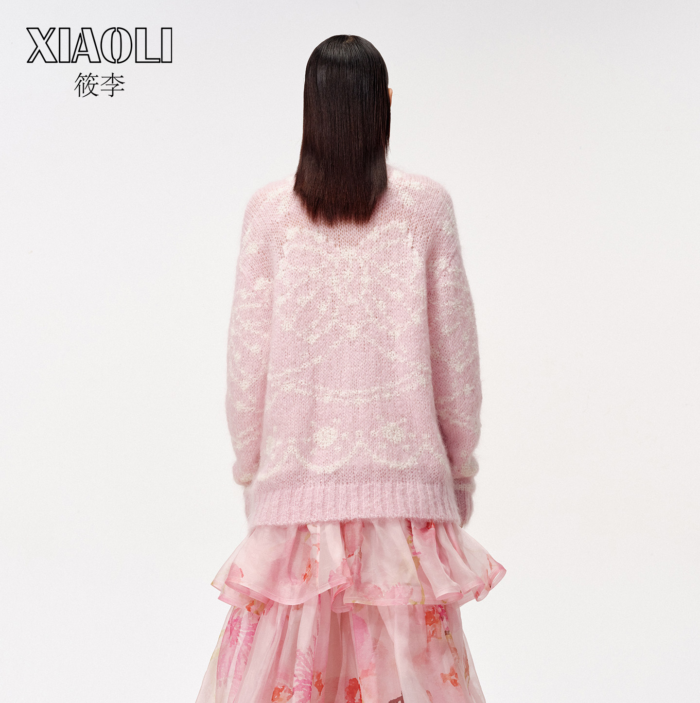 【XIAOLI筱李】粉色马海毛提花圆领毛衣混纺针织套头衫女25秋新品