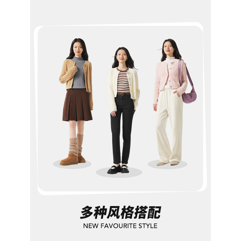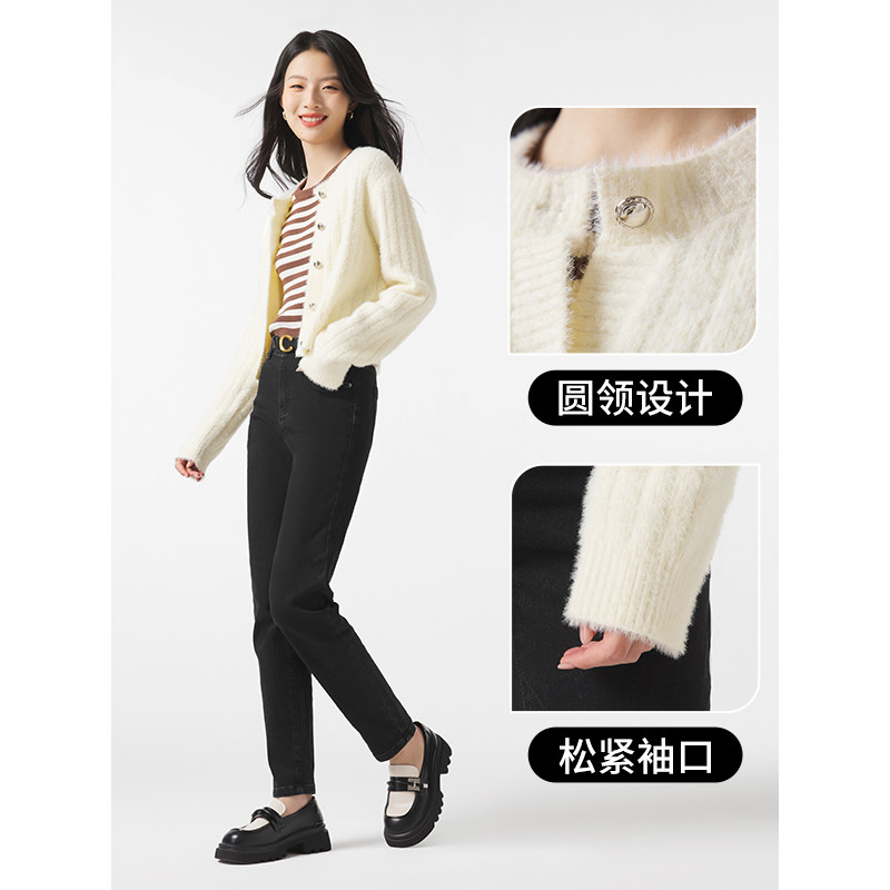 热风2024年冬季新款女士时尚通勤绒感针织衫低圆领百搭休闲开衫女