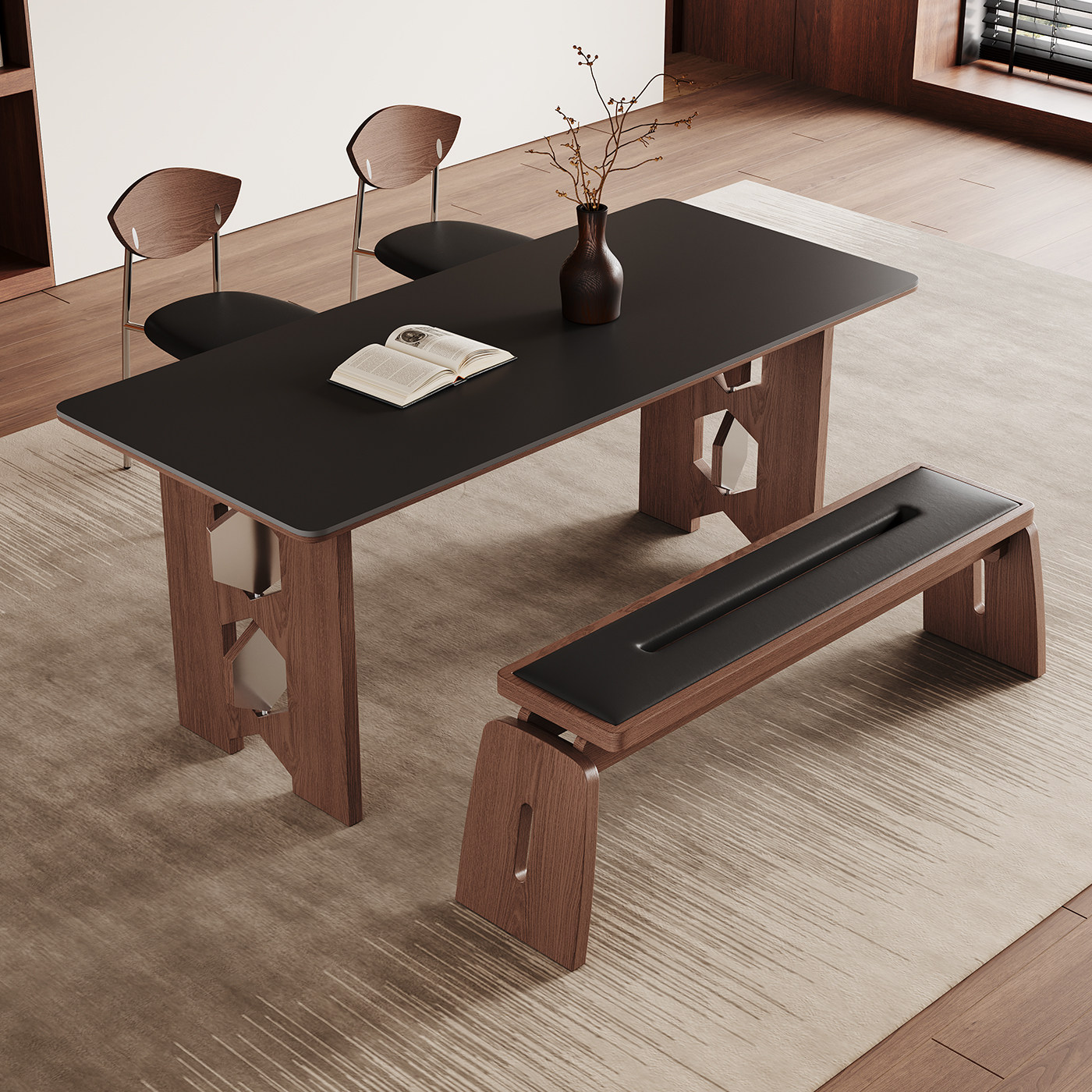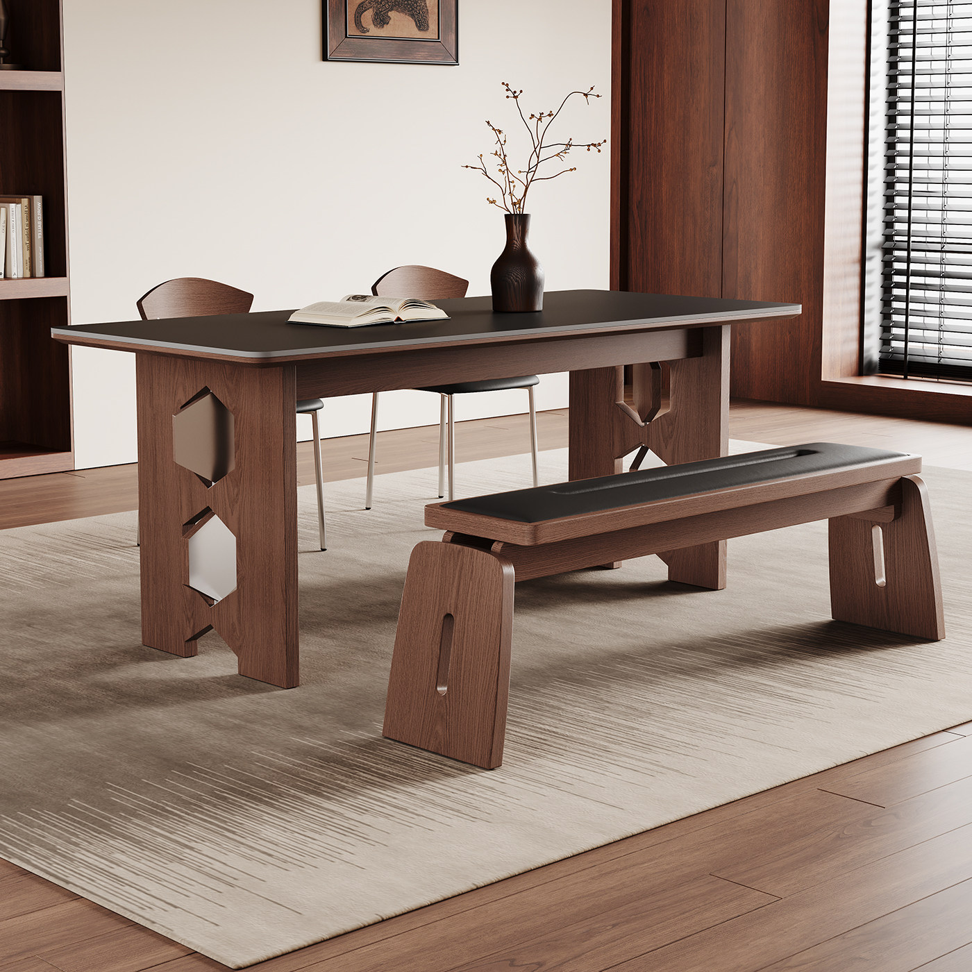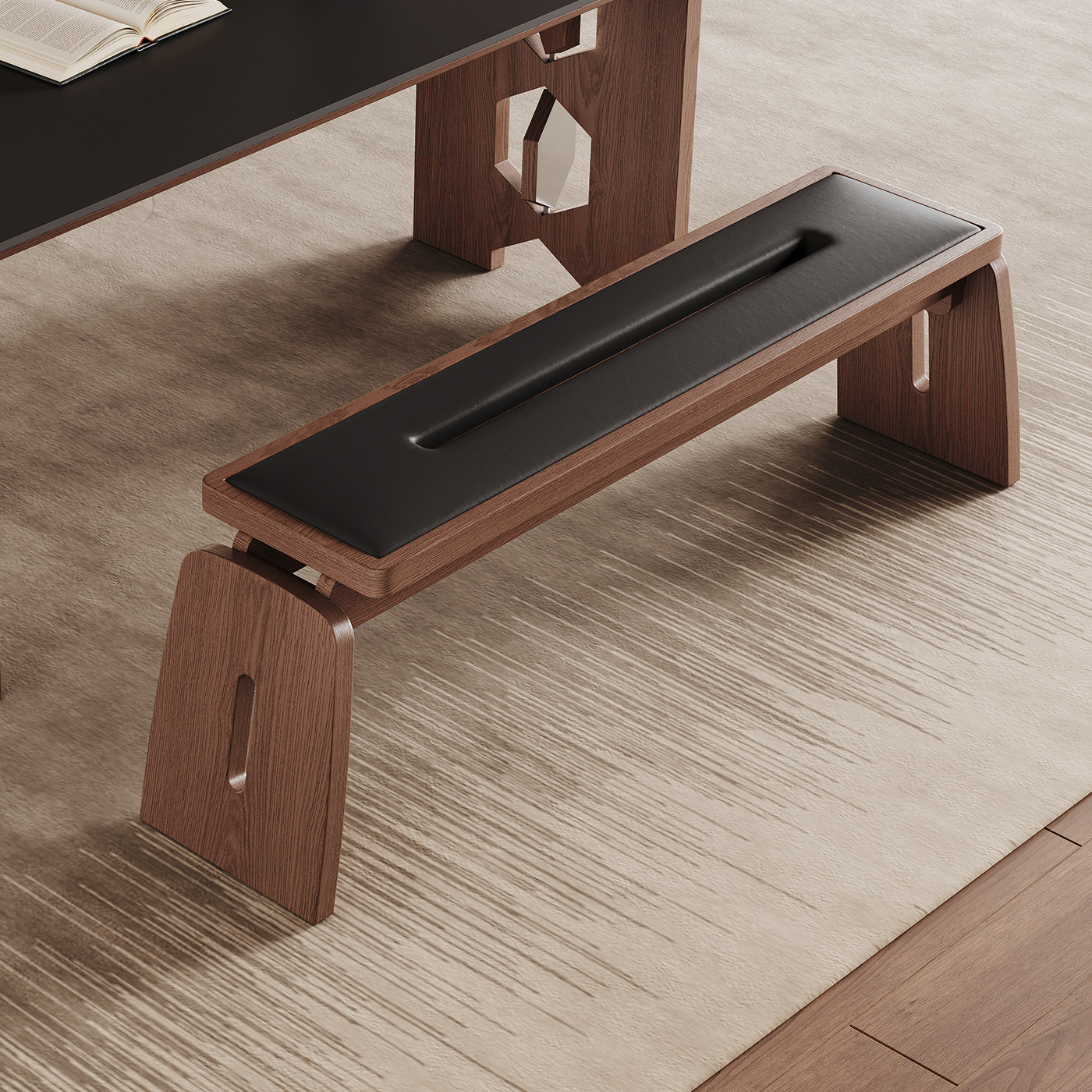 中古风实木长凳家用小户型2025新款现代简约软包复古两人休闲餐椅