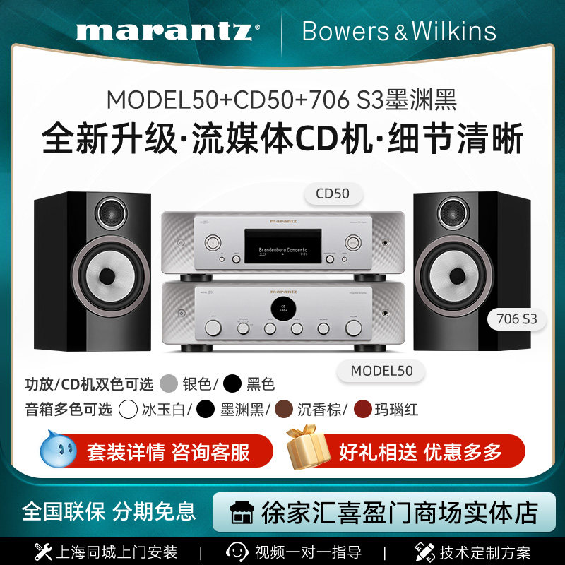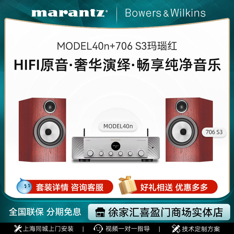 B&W宝华韦健新款706S3书架箱+马兰士Model40n流媒体功放Hifi套装
