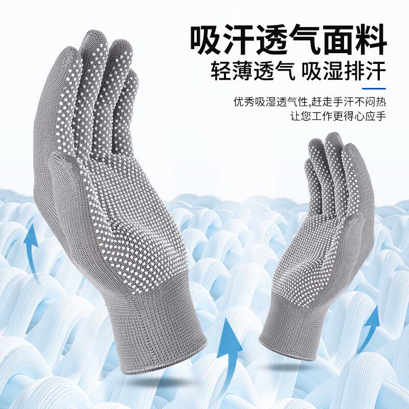 手套劳保耐磨工作防滑防晒尼龙薄款夏季干活透气点胶户外搬运男女